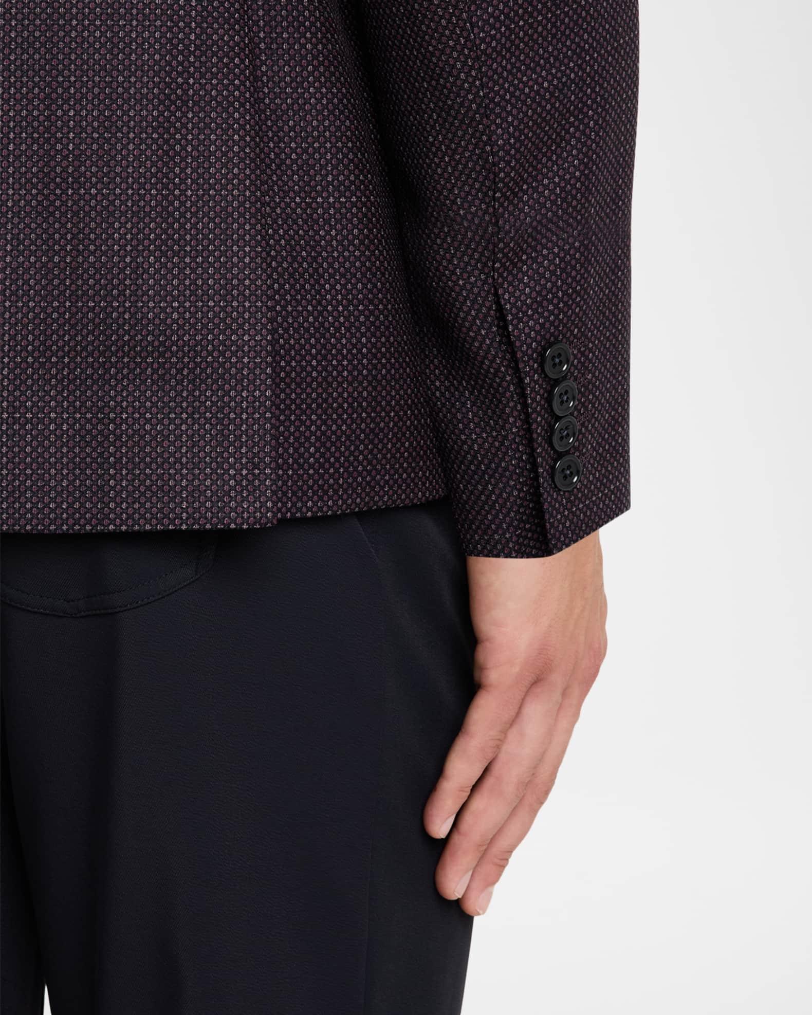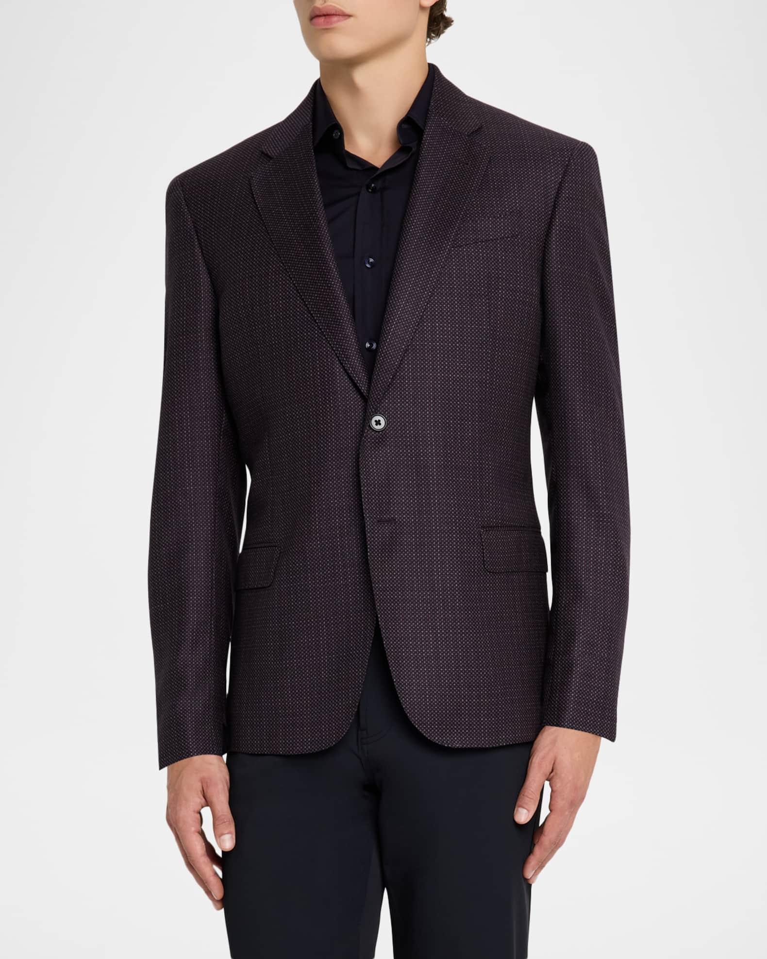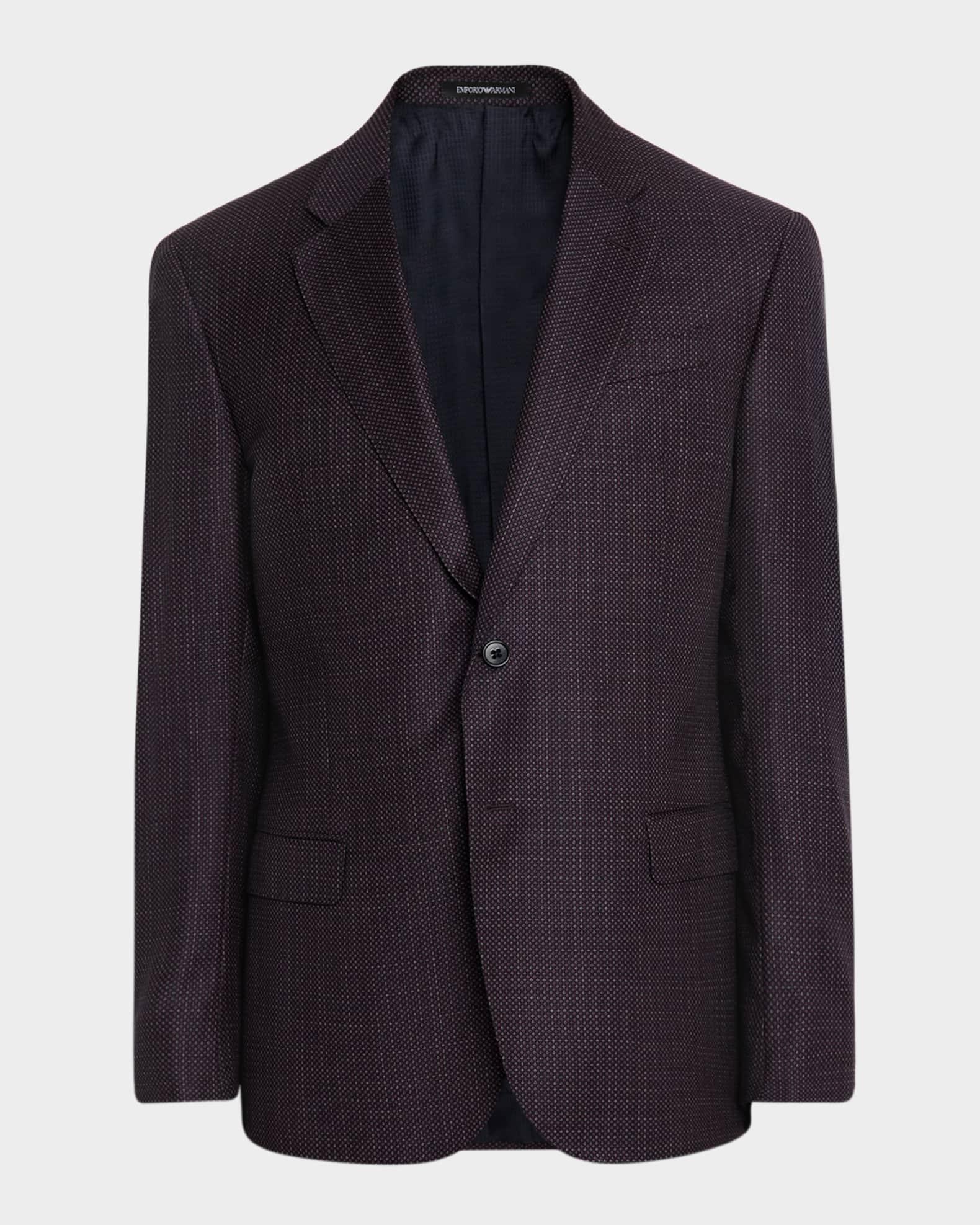 Emporio Armani sport jacket crafted from Super 130's wool, showcasing a large birdseye pattern G Line Notch lapels Single-breasted front Chest welt pocket Hip flap pockets Four-button cuffs Double-vented back Virgin wool/viscose Dry clean Imported