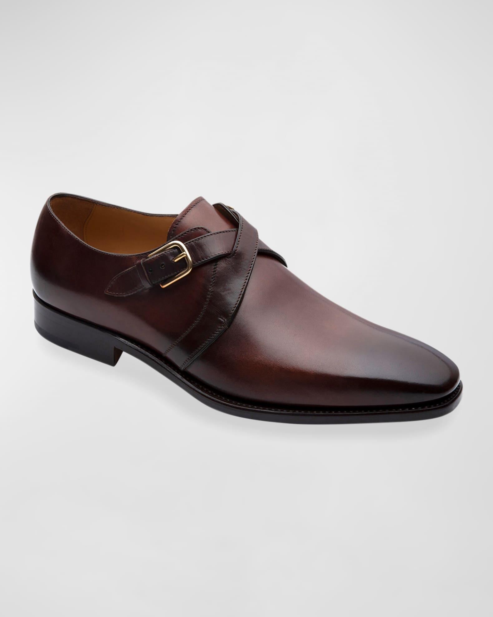 From the Galante Collection. Dapper leather dress shoes with handstiched, Goodyear welt construction exude contemporary refinement. Leather upper Almond toe Adjustable buckle closure Leather lining Padded insole Leather sole Made in Italy. Mens Shoes - Mens Classic Footwear > Paul Stuart > Saks Fifth Avenue > Barneys. Paul Stuart. Color: Auburn. Size: 7.