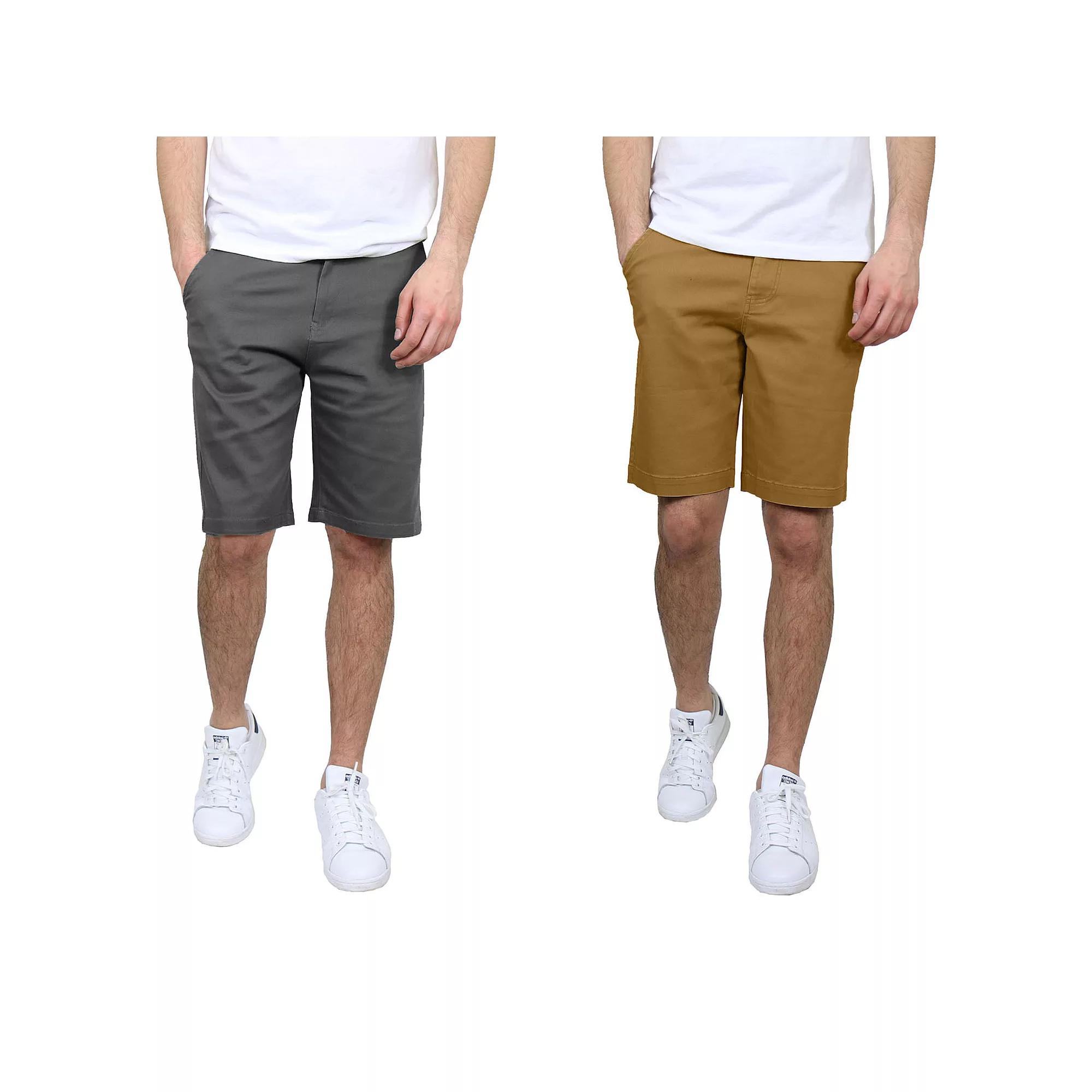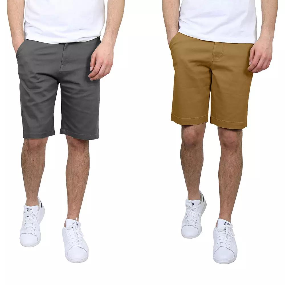 Gear up for the summer with this mens 2-pack of 10.5-in. flat-front slim-fit stretch chino shorts from Galaxy. Click on this MENS GUIDE to find the perfect fit and more! Gear up for the summer with this mens 2-pack of 10.5-in. flat-front slim-fit stretch chino shorts from Galaxy. Click on this MENS GUIDE to find the perfect fit and more! FEATURES Includes: 2 pairs of shorts Zipper fly with button closure 5 exterior pockets Double stitched hem Flat front Stretch chino constructionFIT & SIZING 10.5-in. inseam Slim fitFABRIC & CARE Cotton, spandex Machine wash Imported Size: 30. Color: Gray Timber. Gender: male. Age Group: adult. Material: Cotton Blend.