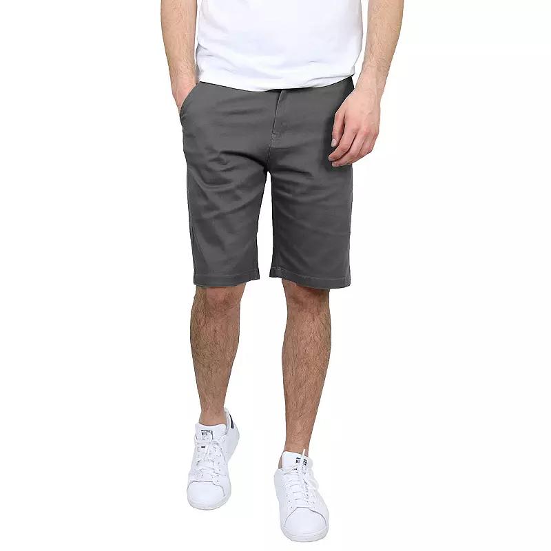 Gear up for the summer with these mens 5-pocket flat-front slim-fit stretch chino shorts from Galaxy by Harvic. Click on this MENS GUIDE to find the perfect fit and more! Gear up for the summer with these mens 5-pocket flat-front slim-fit stretch chino shorts from Galaxy by Harvic. Click on this MENS GUIDE to find the perfect fit and more! FEATURES Zipper fly with button closure 5 pockets Double stitched hem Flat-front designFIT & SIZING 10.5-in. inseam Slim fitFABRIC & CARE Cotton, spandex Machine wash Imported Size: 40. Color: Gray. Gender: male. Age Group: adult. Material: Cotton Blend.