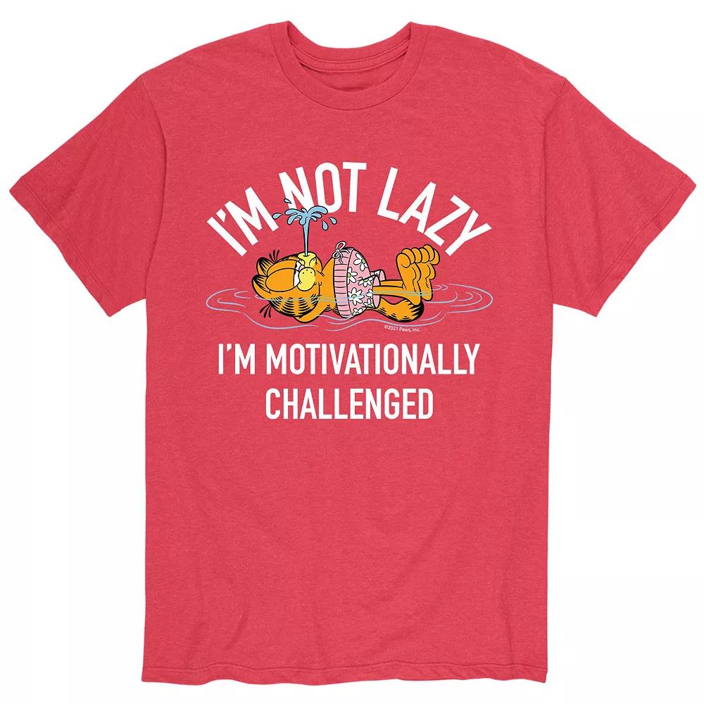 Take it easy with this mens Garfield lazy tee. Take it easy with this mens Garfield lazy tee. Crewneck Short sleevesFABRIC & CARE Cotton, polyester Machine wash Imported Color: Red. Gender: male. Age Group: adult. Pattern: Graphic. Material: Cotton Blend.