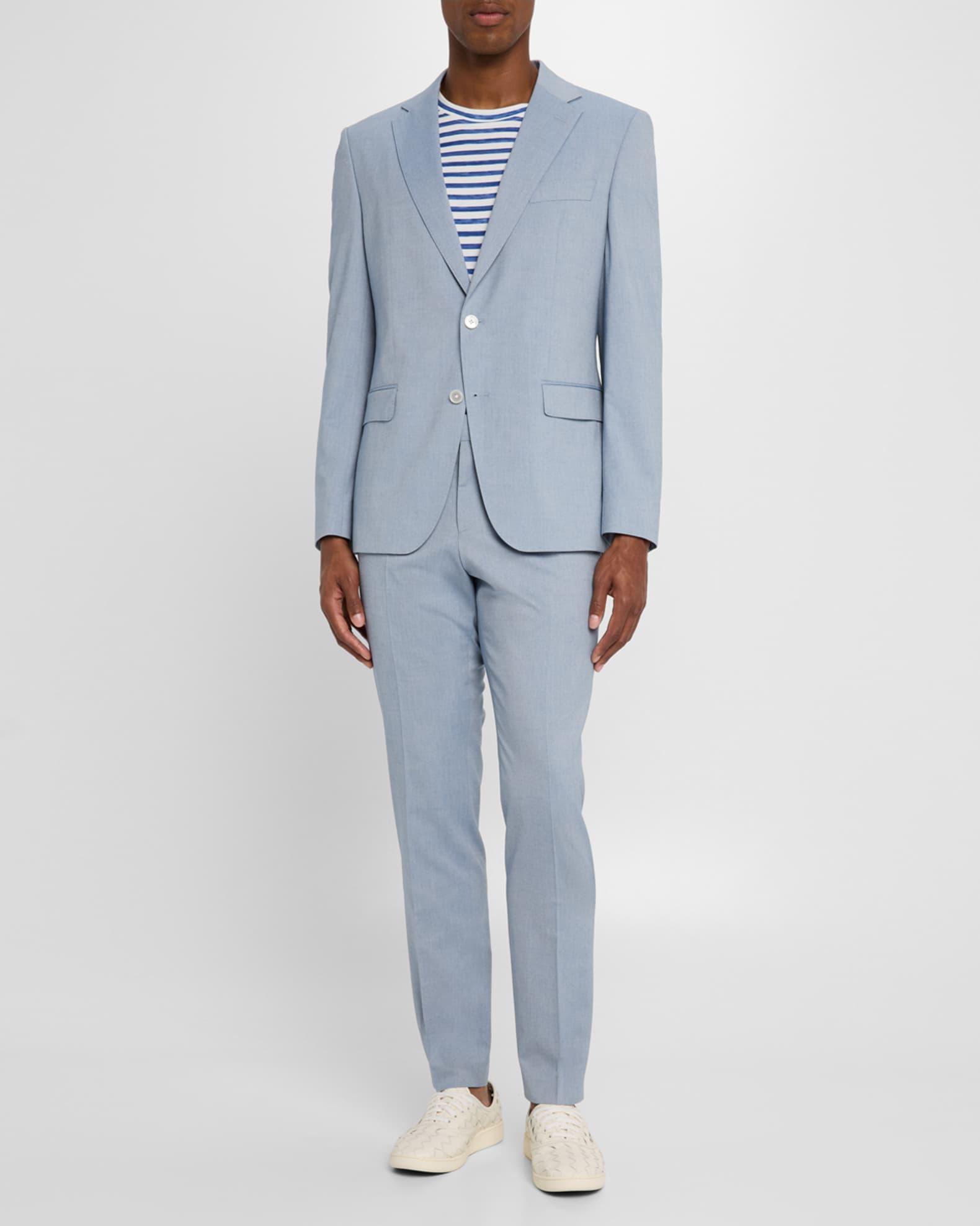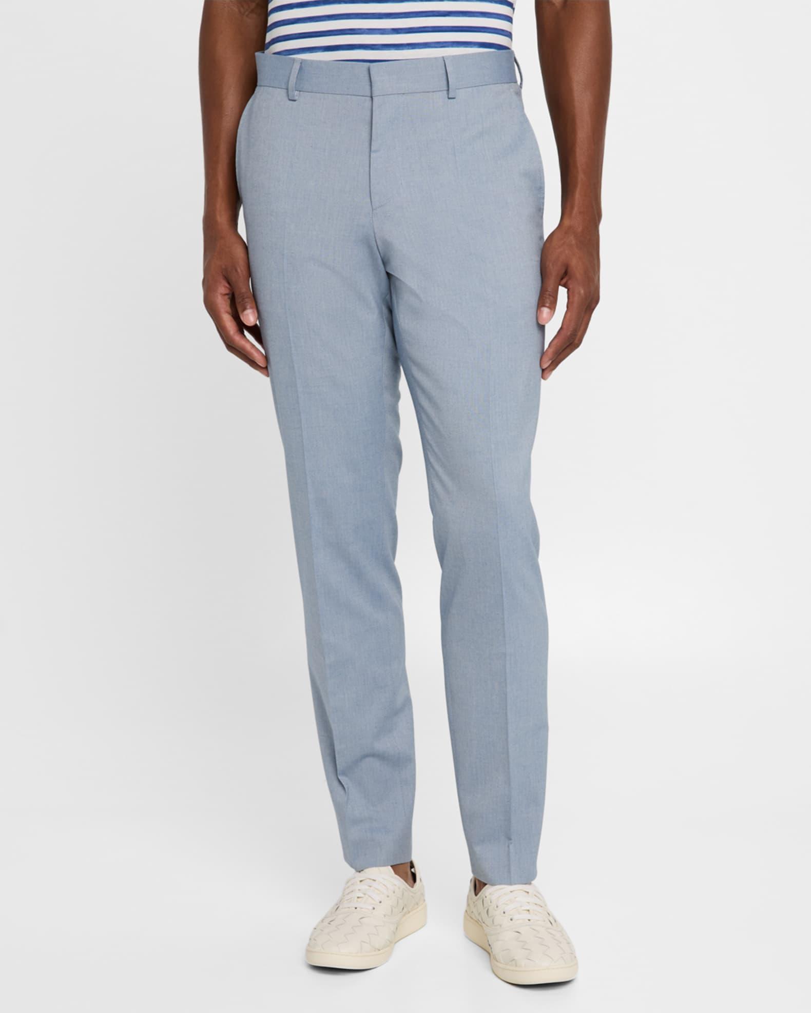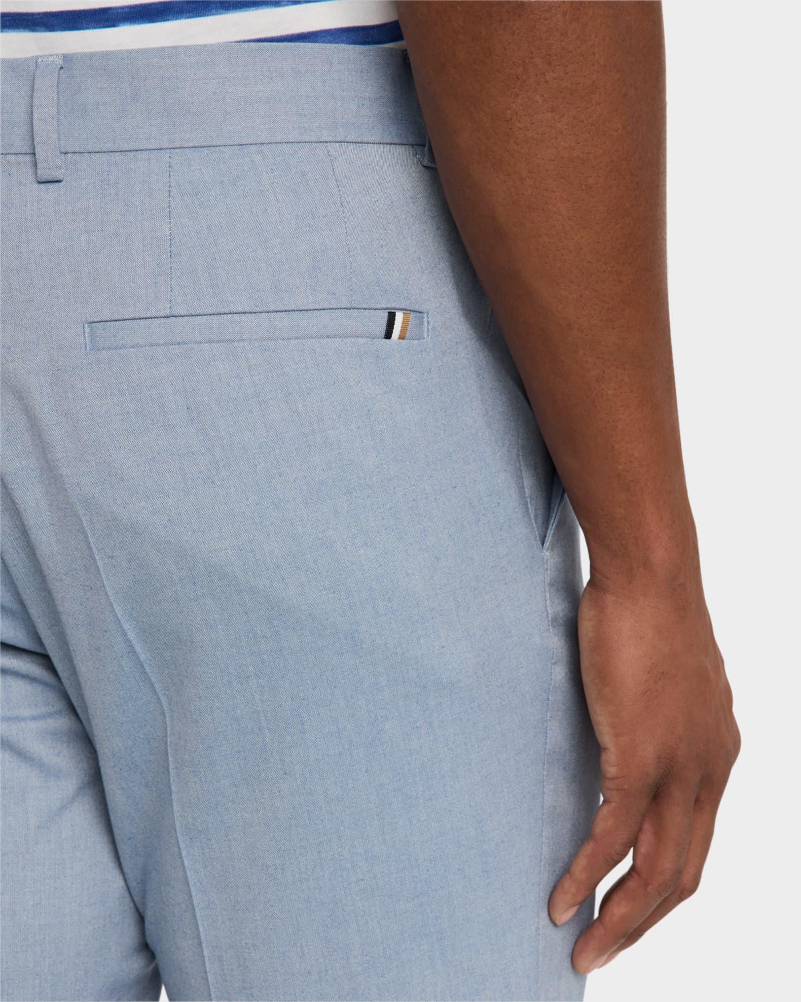 BOSS "Genius" pants in a solid stretch-wool blend Approx. 6.9" rise; 31.9" inseam Regular rise Flat front Side and back welt pockets Fitted through slim, straight legs Full length Hook/zip fly; belt loops Wool/cotton/polyester/viscose Lining: Viscose Dry clean Imported