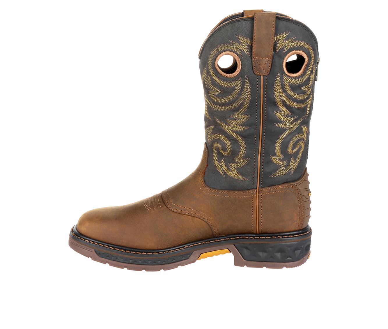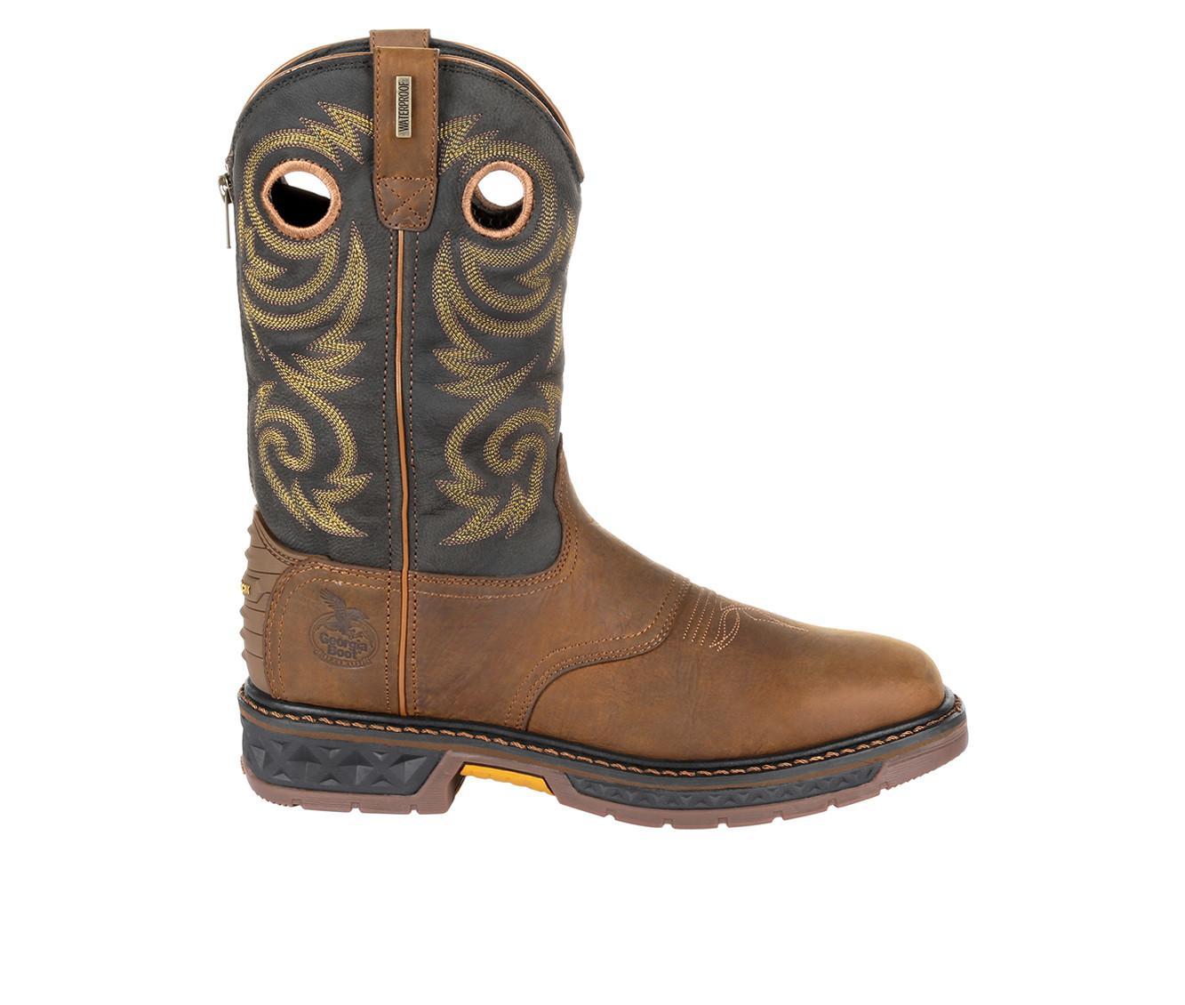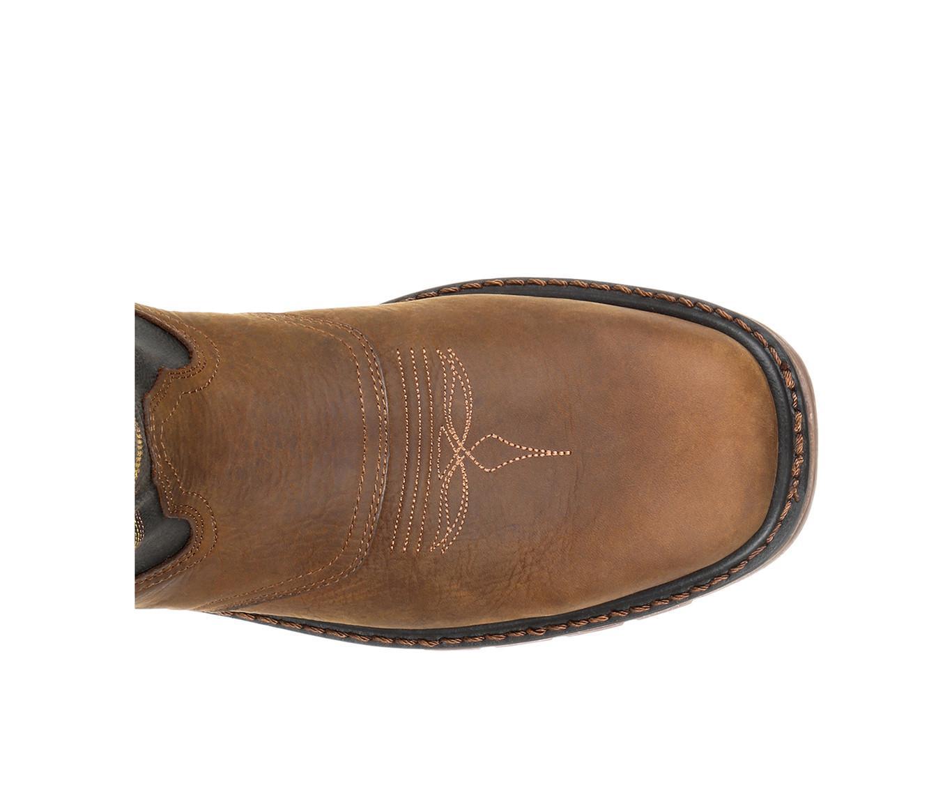 The interior of this western work boot is equipped with high performance mesh and the Georgia Waterproof System. The Georgia waterproofing is guaranteed to keep your feet dry as you grind through the workday. Also inside is a removable cushioning polyurethane insole. It responds with each step and bounces back to provide you with all day comfort.