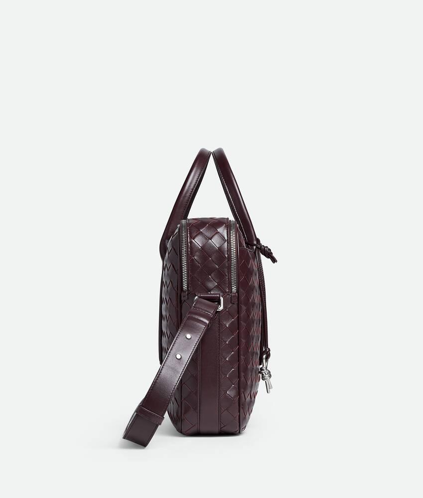 • Intrecciato leather briefcase with adjustable and detachable strap• Metallic knot detail on the leather strap• Exterior flat pocket and back belt to attach to a trolley• Two zipped compartments with a padded laptop compartment and one zipped pocket• Zipper closure