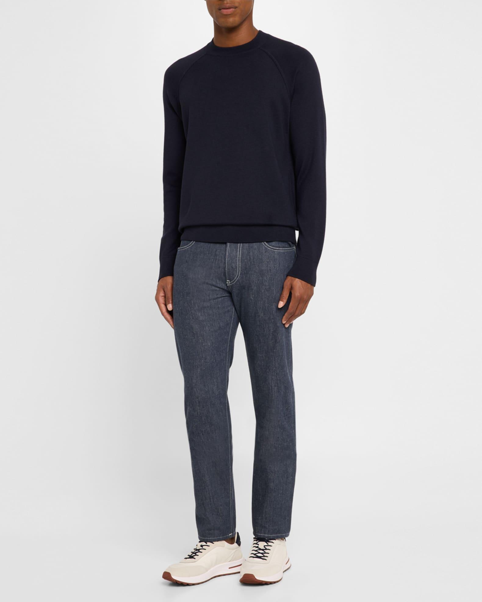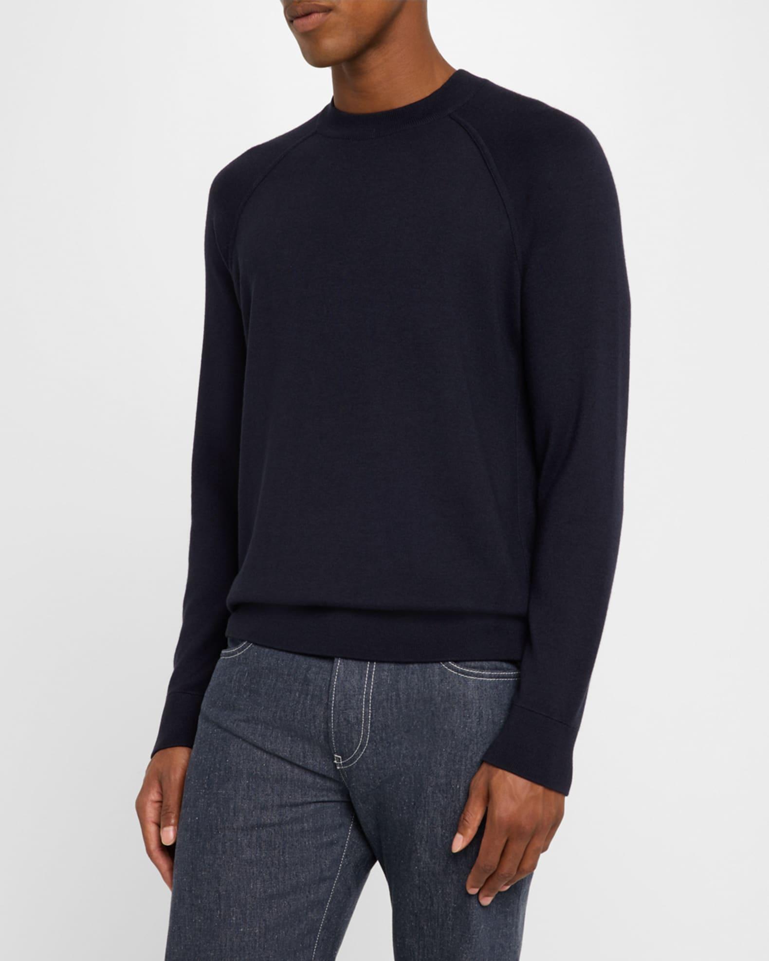 Loro Piana "Girocollo Balfour" crewneck sweater crafted from premium cashmere-wool blend fabric Ribbed crew neckline Long sleeves Saddle shoulders Ribbed cuffs and hem Pullover style Classic fit Cashmere/wool/silk Made in Italy