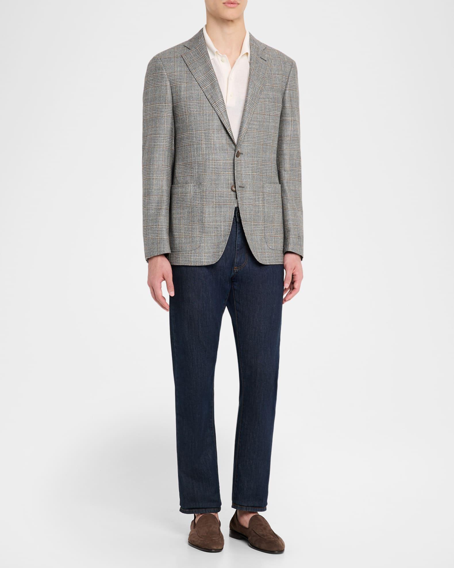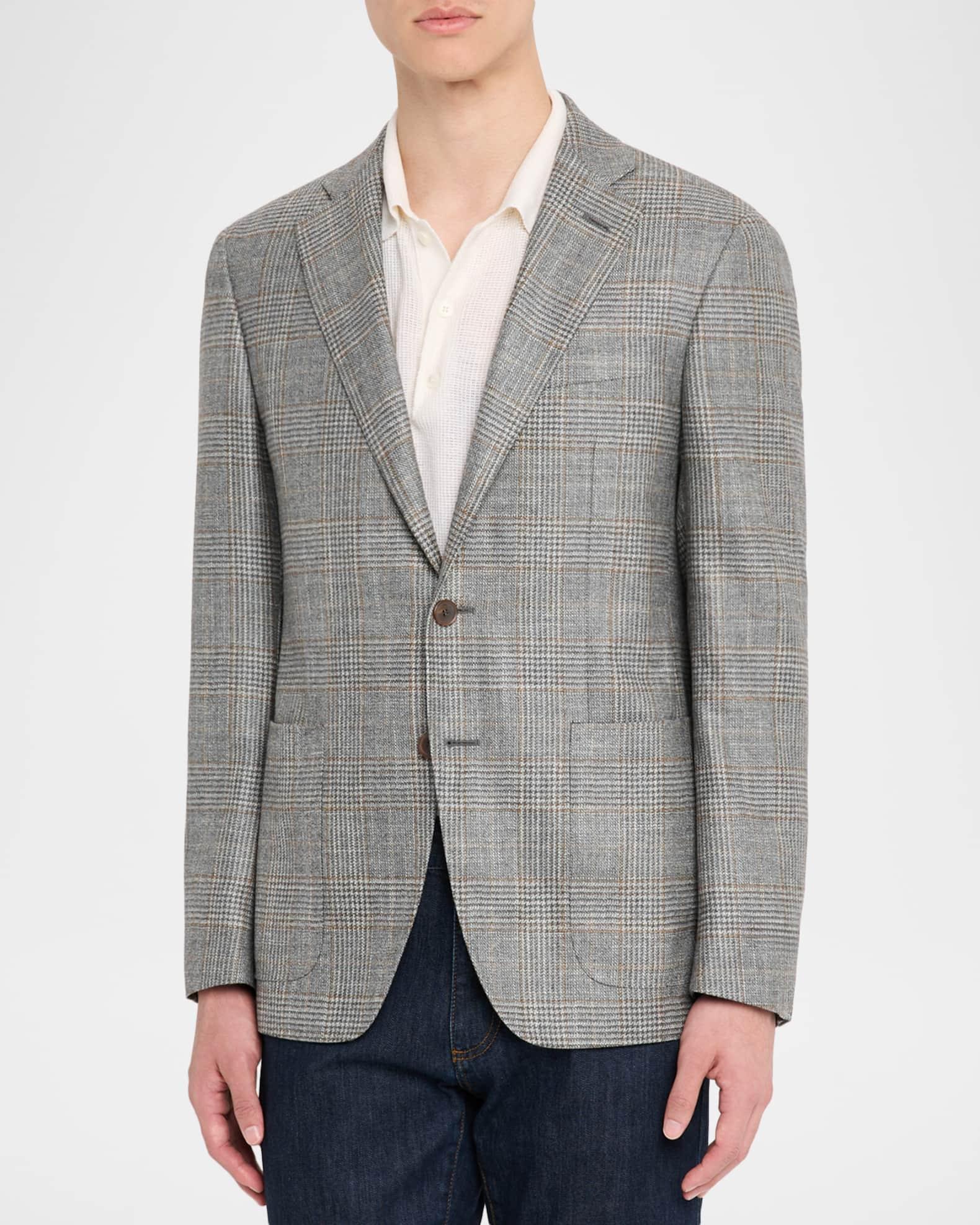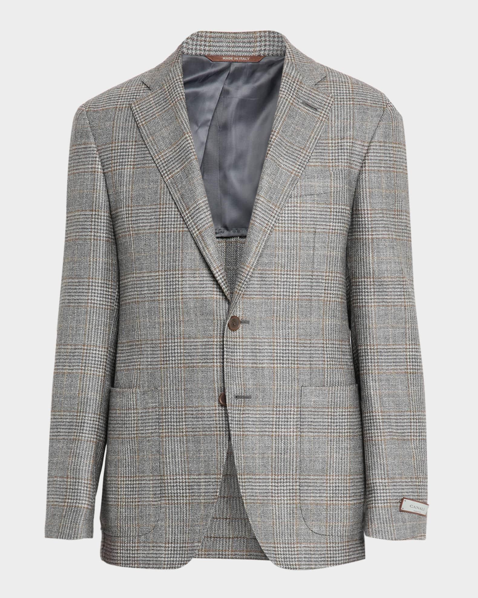 Canali Glen plaid sport coat in a breathable stepweave wool blend to wrap the body without constricting it Kei collection Notch lapels Single-breasted front Chest welt pocket Hip patch pockets Internal breast pocket Double-vented back Tailored fit Wool/silk/cashmere Lining: Cupro Dry clean Made in Italy