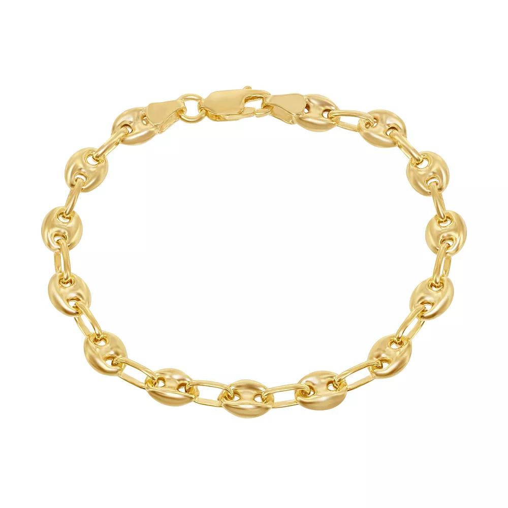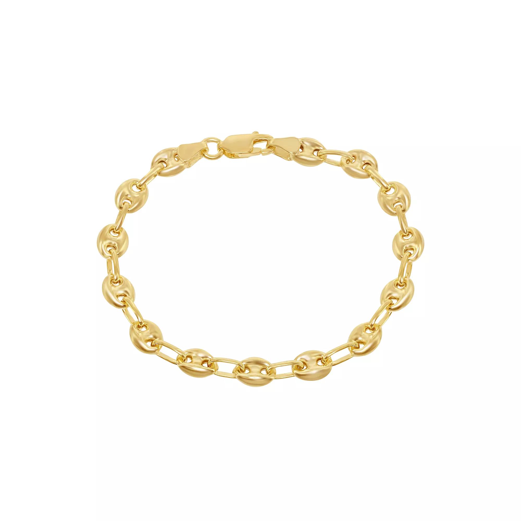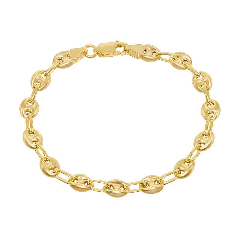Showcase your sense of style with this mens gold tone sterling silver puffed marina chain bracelet. Showcase your sense of style with this mens gold tone sterling silver puffed marina chain bracelet. Length: 7 in. Clasp: lobster-claw Metal: sterling silver Plating: gold tone Finish: polished Packaging: boxed Please note, due to the high value of this item, a signature may be required upon delivery. Size: 7. Color: Yellow. Gender: male. Age Group: adult. Material: Gold Plate.