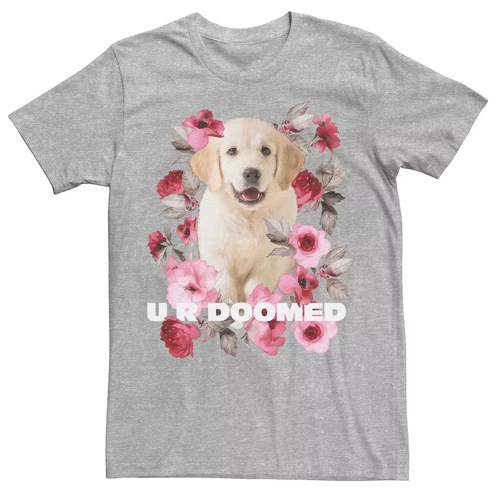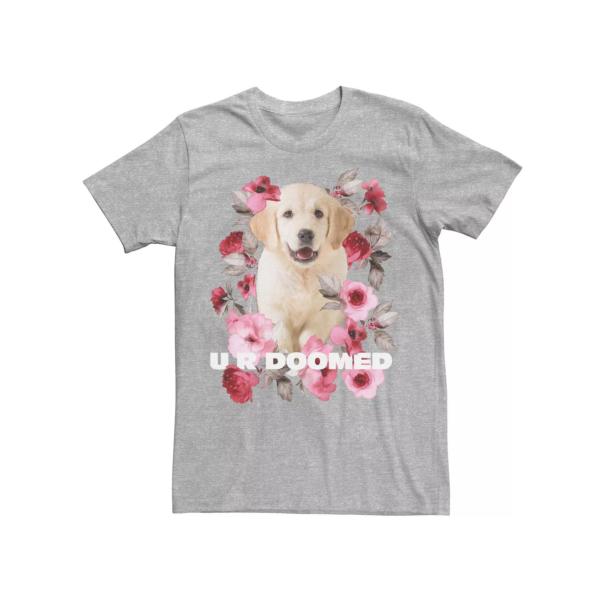 Hell love wearing this Mens Golden Retriever Puppy U R Doomed Flowers Poster Graphic Tee. Crewneck Short sleevesFABRIC & CARE Cotton Machine wash Imported Size: XL. Color: Med Grey. Gender: male. Age Group: adult. Material: Cotton Blend.