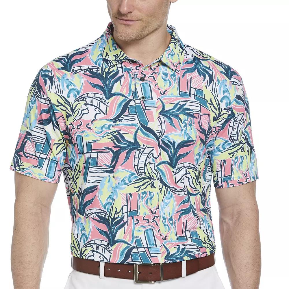 The Men's Grand Slam Short Sleeve Vacation Polo offers a vacation-inspired print, making it perfect for warm-weather outings. Moisture-wicking fabric ensures all-day comfort. Click on this MEN'S GUIDE to find the perfect fit and more!FEATURES V-neck Stretch shoulder seams for freedom of movement Moisture-wicking fabric keeps you dry Sun protection protects skin from harmful UV rays Short sleeveFIT & SIZING Regular fitFABRIC & CARE 88% Polyester, 12% Elastane Machine wash ImportedRESPONSIBLE Phthalate free Color: Flowering Ginger. Gender: male. Age Group: adult.