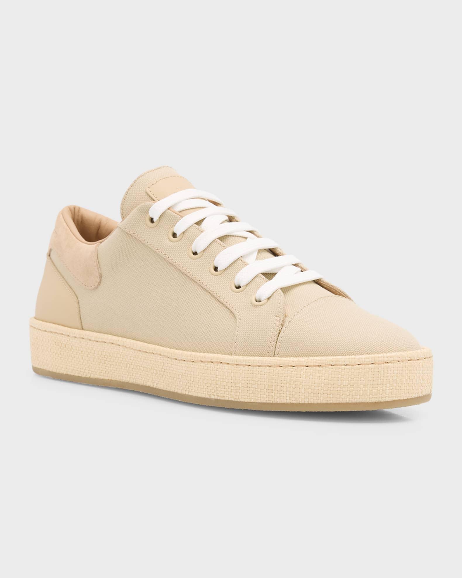 Crafted of canvas with a crepe sole covered in raffia, Giuseppe Zanottis Axia low-top sneakers feature a round toe and leather lining. Round toe Lace-up style Canvas upper Leather lining Raffia sole Made in Italy. Mens Shoes - Advanced Footwear > Giuseppe Zanotti > Saks Fifth Avenue > Barneys. Giuseppe Zanotti. Color: Crema. Size: 9.