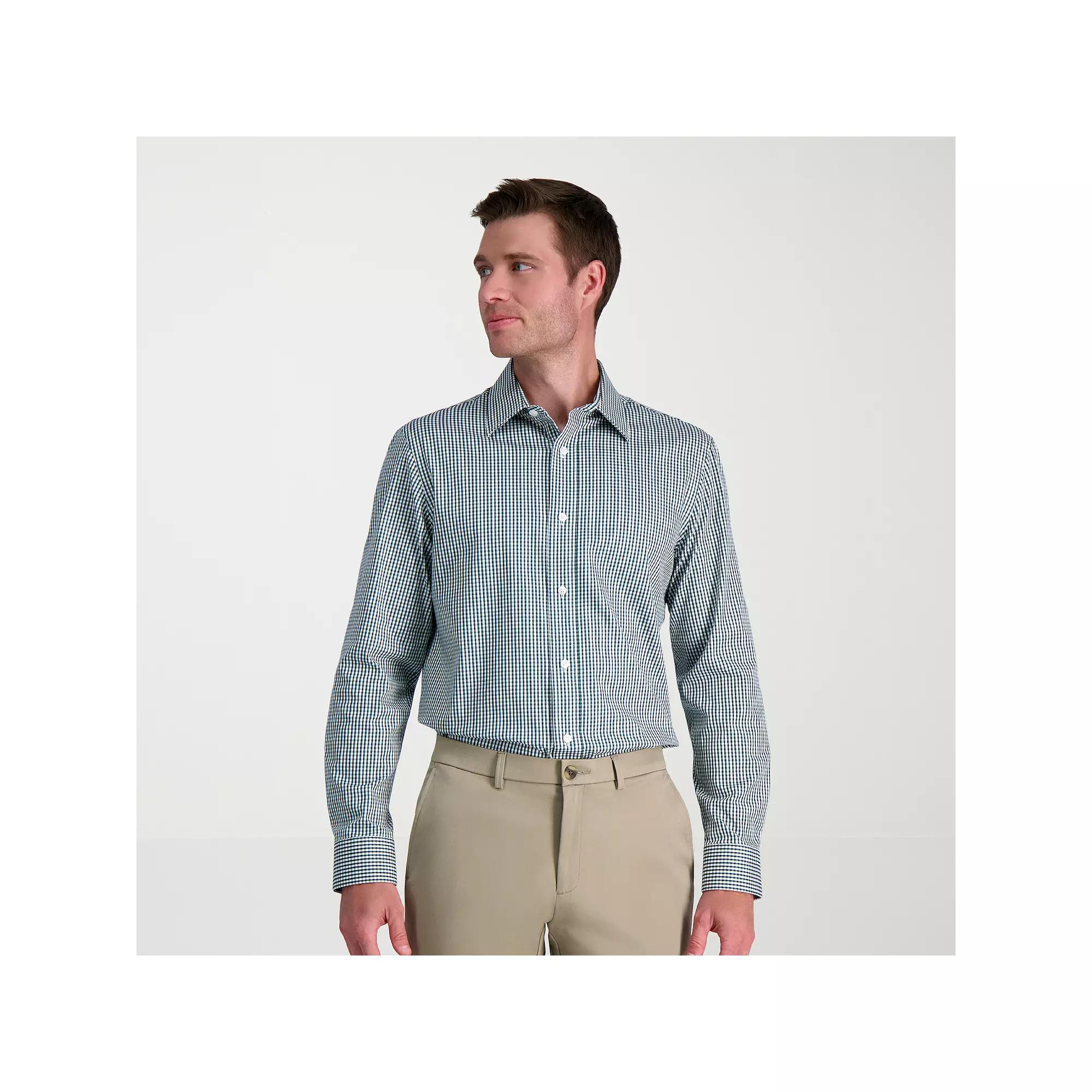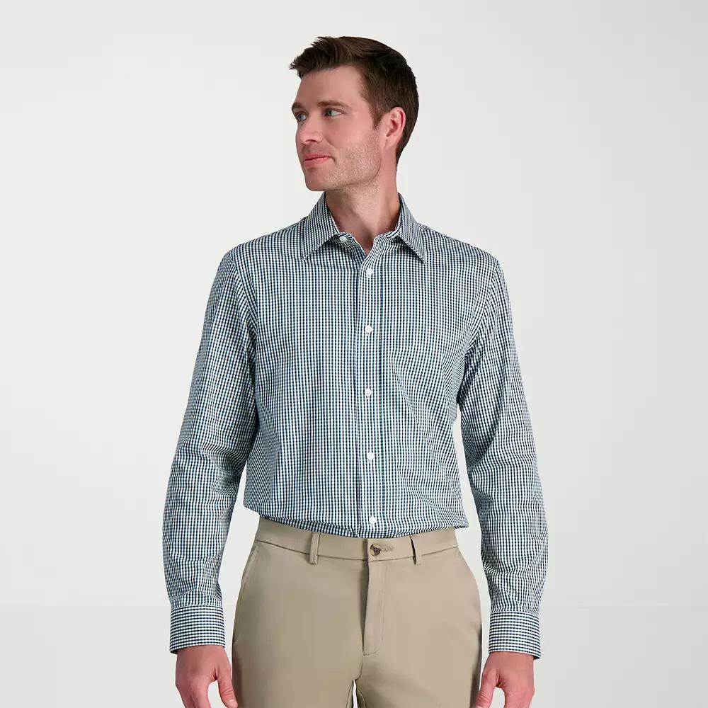 Well-dressed man. Look your best in this handsome mens Haggar dress shirt thats sure to become a formal favorite. Click on this MENS GUIDE to find the perfect fit and more! Stretch fabric technology Wrinkle resistant fabric Spread collar flares to accommodate wider tie knots Long sleevesFIT & SIZING Classic fit Motion Ease collar adjusts up to 1/2-inch for comfortFABRIC & CARE Cotton, spandex Machine wash Imported Size: 15.5-34/35. Color: Dark Green Check. Gender: male. Age Group: adult.