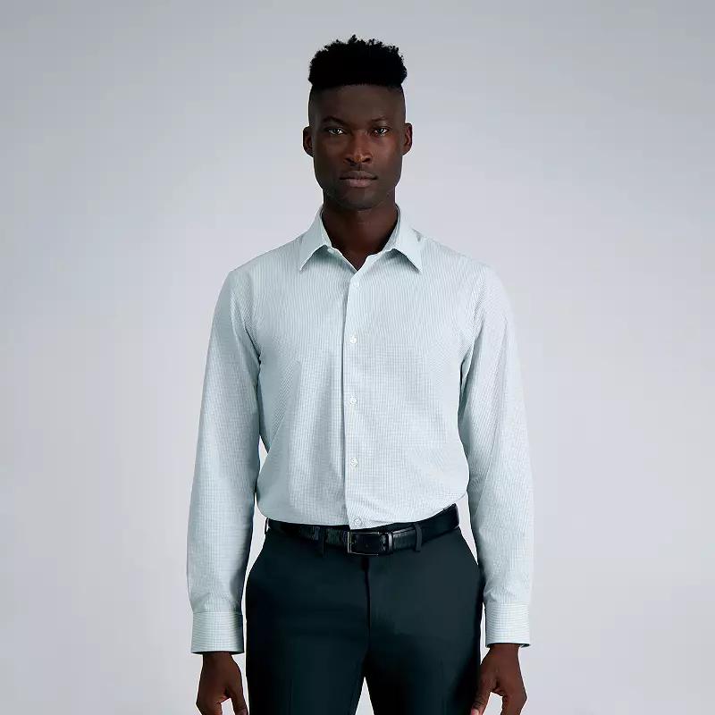 Youll look perfectly polished sporting this mens Haggar slim-fit dress shirt. Click on this MENS GUIDE to find the perfect fit and more! Youll look perfectly polished sporting this mens Haggar slim-fit dress shirt. Click on this MENS GUIDE to find the perfect fit and more! Stretch fabric technology Wrinkle resistant fabric Spread collar flares to accommodate wider tie knots Cuffed sleeves Button front Long sleevesFIT & SIZING Slim fitFABRIC & CARE Cotton, spandex Machine wash Imported Size: 17.5-34/35. Color: Dark Green Check. Gender: male. Age Group: adult.