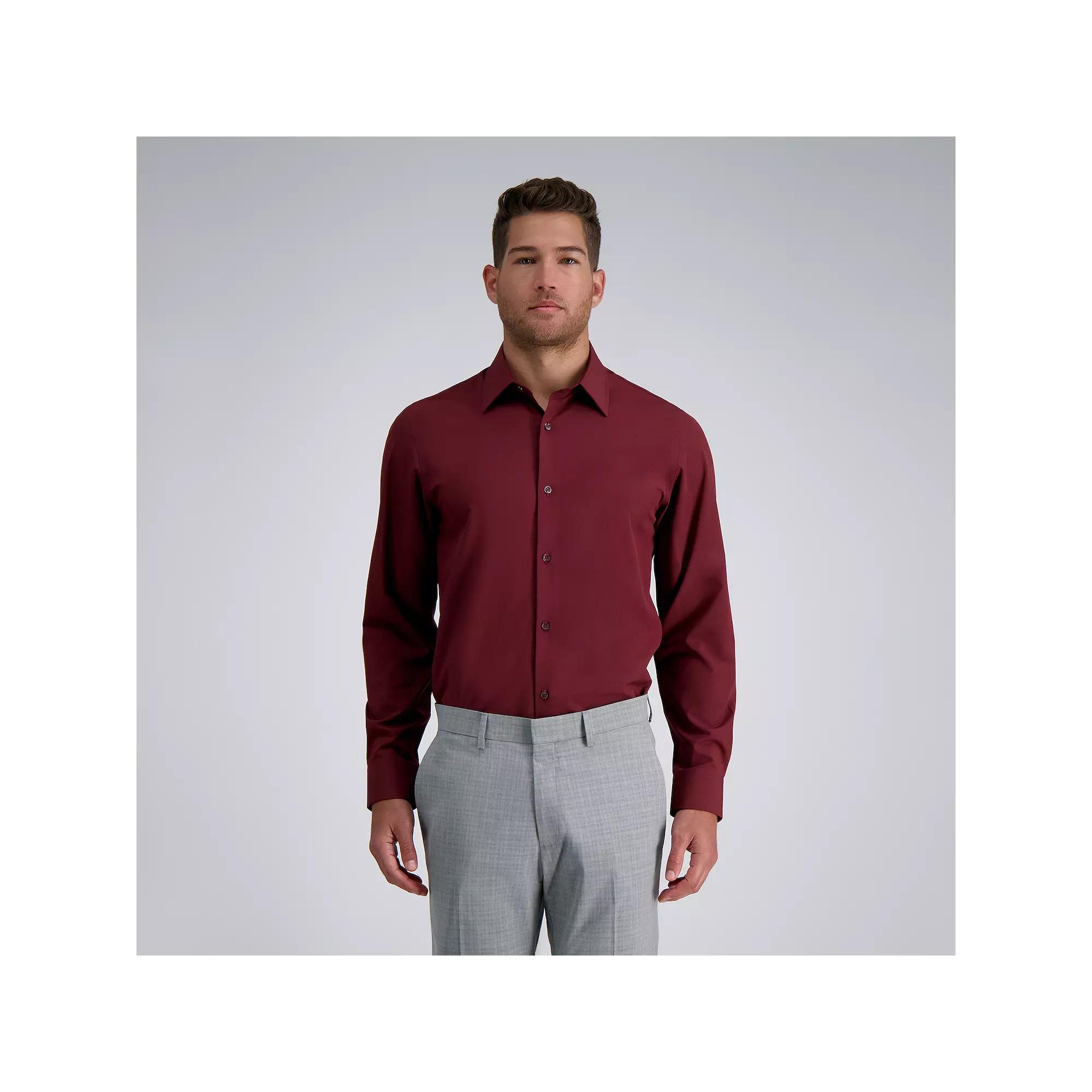 Lasting impression. For a sophisticated look that wont soon be forgotten, this mens dress shirt from Haggar features a slim fit and modern look. Click on this MENS GUIDE to find the perfect fit and more! Lasting impression. For a sophisticated look that wont soon be forgotten, this mens dress shirt from Haggar features a slim fit and modern look. Click on this MENS GUIDE to find the perfect fit and more! Smart Wash technology 360 Stretch fabric Moisture-control technology Spread collar flares to accommodate wider tie knots No-iron fabric resists wrinkles Button front Long sleevesFIT & SIZING Slim fitFABRIC & CARE Polyester Machine wash Imported Size: 17.5-34/35. Color: Solid. Gender: male. Age Group: adult.