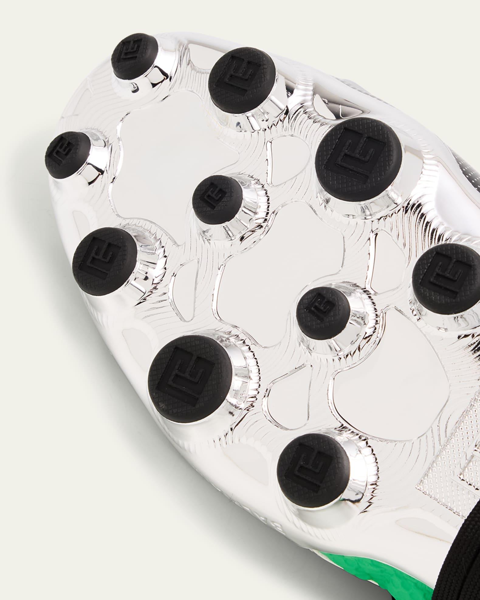 Balmain "Half Time" mules in technical fabric, defined by a luxe faux fur (acrylic, polyester) lining and insole Rubber logo with texture-printed calfskin on the front Flat heel Round toe Side laces Tongue with raised PB logo Embossed logo on the side Outersole with PB cramps Made in France