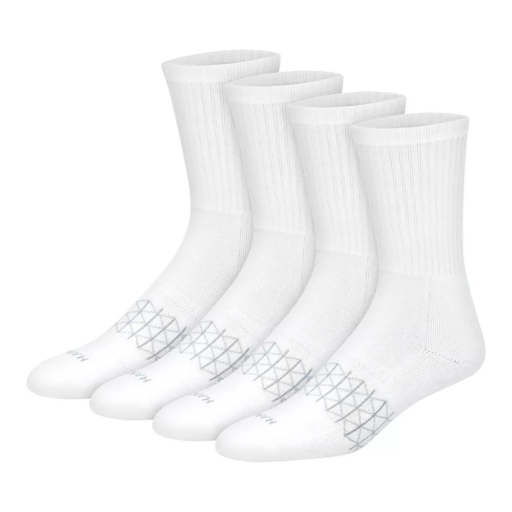 Experience unbeatable comfort with Hanes latest crew socks, designed to elevate your active lifestyle without breaking the bank. Featuring a dense cushioned footbed and seamless toe for a snug fit, these socks keep you cool and irritation-free, making them the perfect everyday companion whether youre hitting the gym or kicking back at home. Click on this MENS GUIDE to find the perfect fit and more!Experience unbeatable comfort with Hanes latest crew socks, designed to elevate your active lifestyle without breaking the bank. Featuring a dense cushioned footbed and seamless toe for a snug fit, these socks keep you cool and irritation-free, making them the perfect everyday companion whether youre hitting the gym or kicking back at home. Click on this MENS GUIDE to find the perfect fit and more!FEATURES Includes 4 pairs of socks Moisture-wicking BreathableFIT & SIZING Crew socks Fits mens shoe size 6-12FABRIC & CARE Cotton, polyester, nylon, spandex Machine wash Imported Color: White. Gender: male. Age Group: adult.