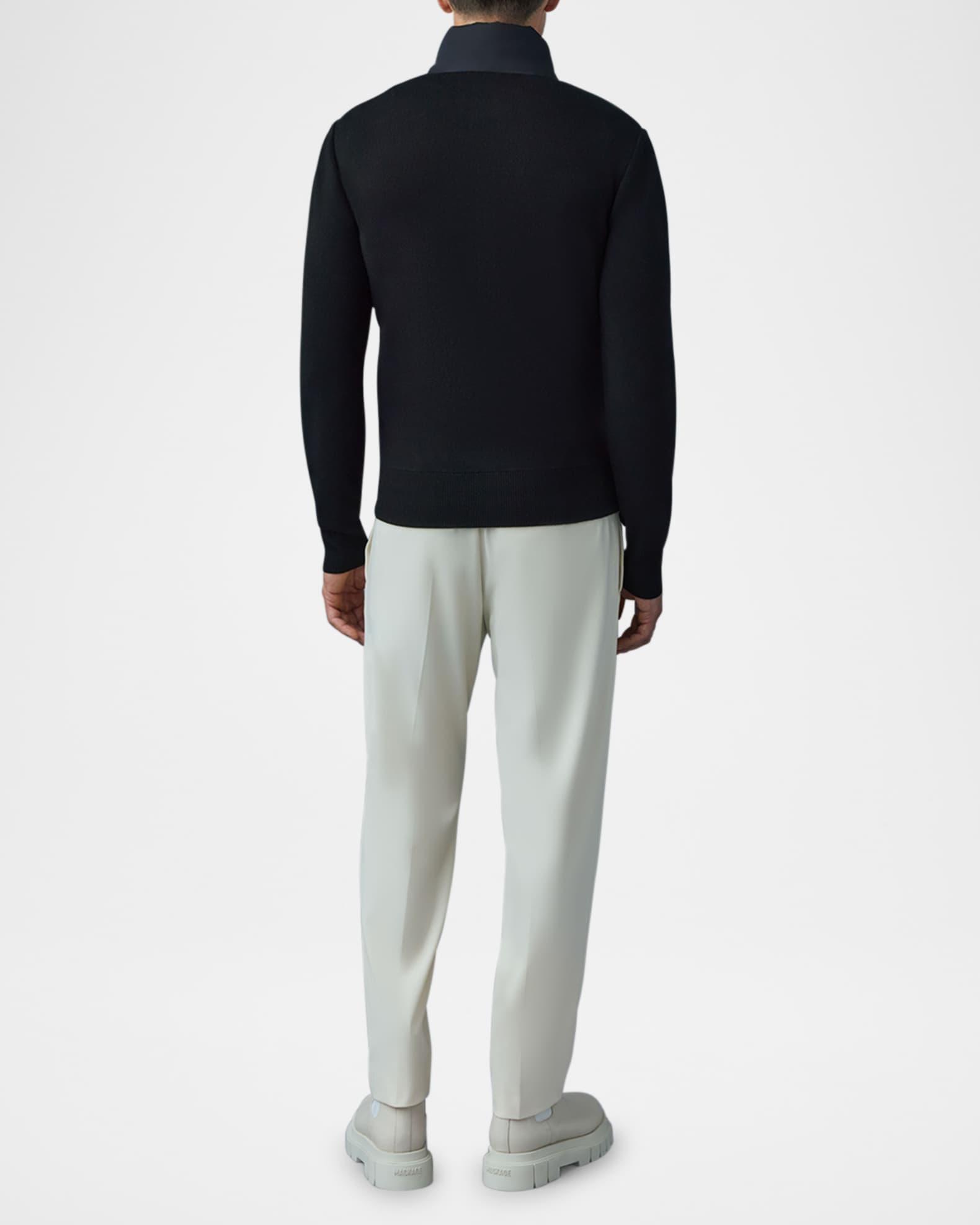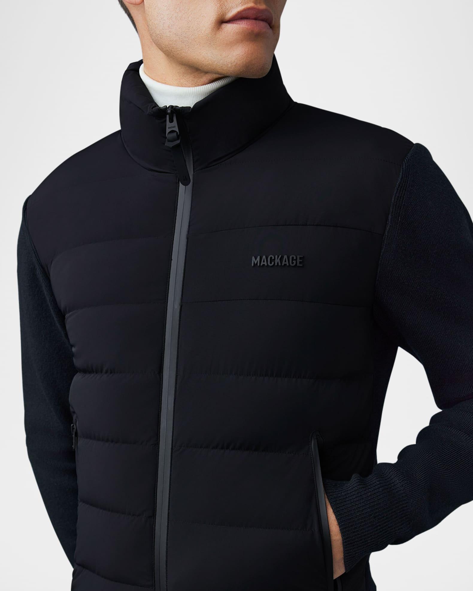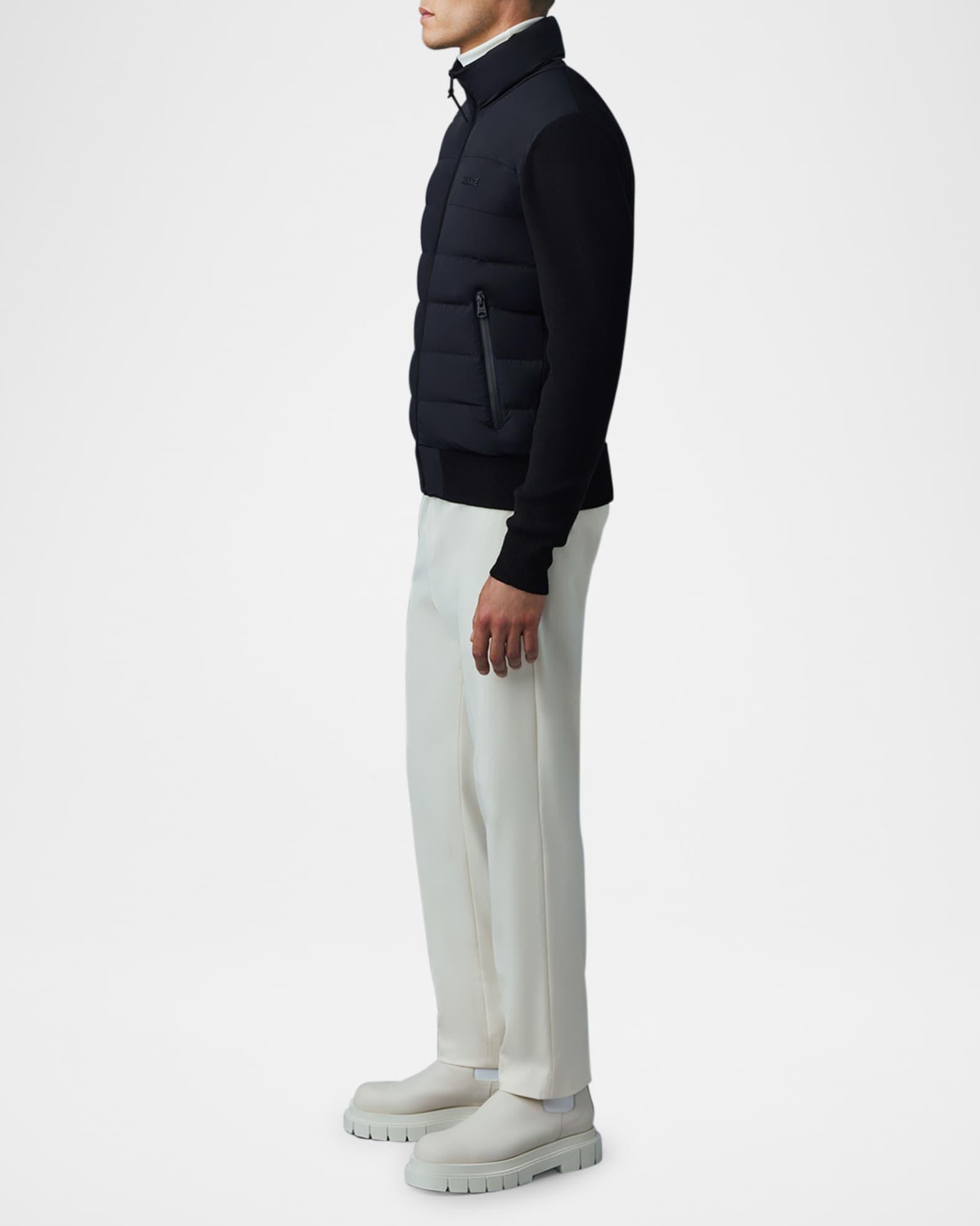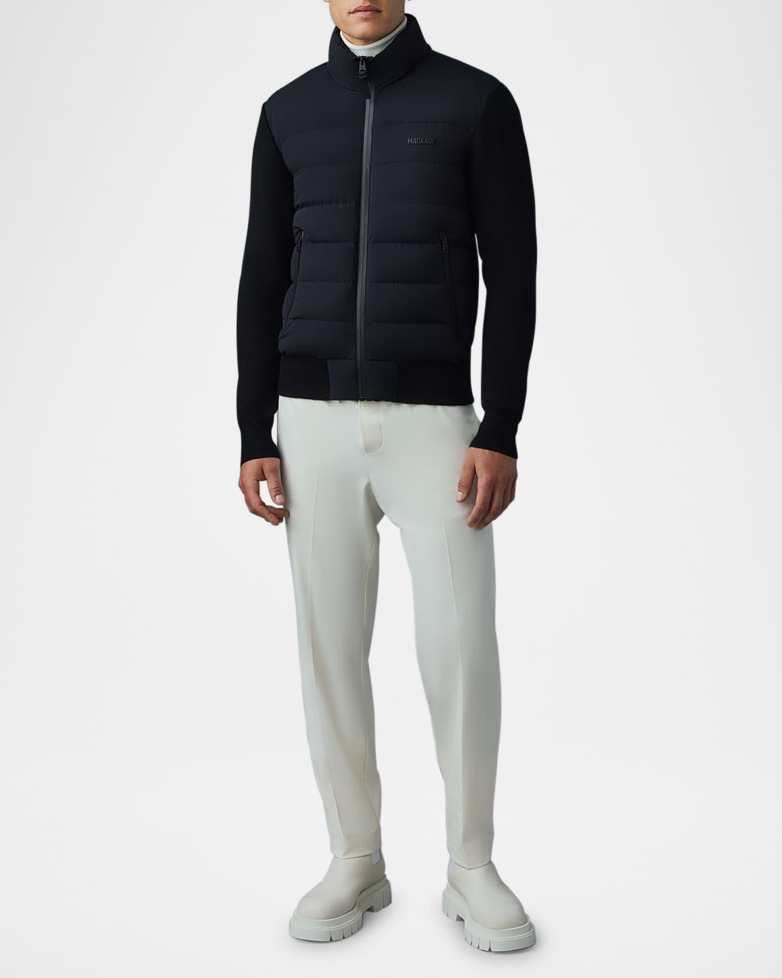 Mackage "Haney-City" hybrid light-down jacket with cardigan silhouette Agile-360 two-way stretch material Funnel neckline Water-resistant front zipper closure Signature MACKAGE logo at chest Water-resistant waist pockets Rib knit cuffs and hem Regular fit Down/feather 800 fill power Nylon/polyamide/elastane/wool Dry clean Imported