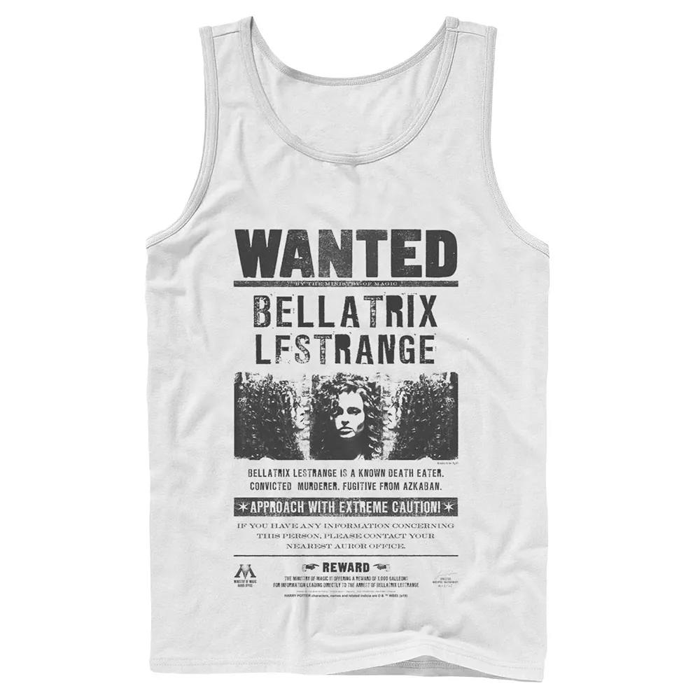 Hell love the look of this Mens Harry Potter Bellatrix Lestrange Wanted Poster Graphic Tank Top. Crewneck SleevelessFABRIC & CARE Cotton Machine wash Imported Color: White. Gender: male. Age Group: adult.