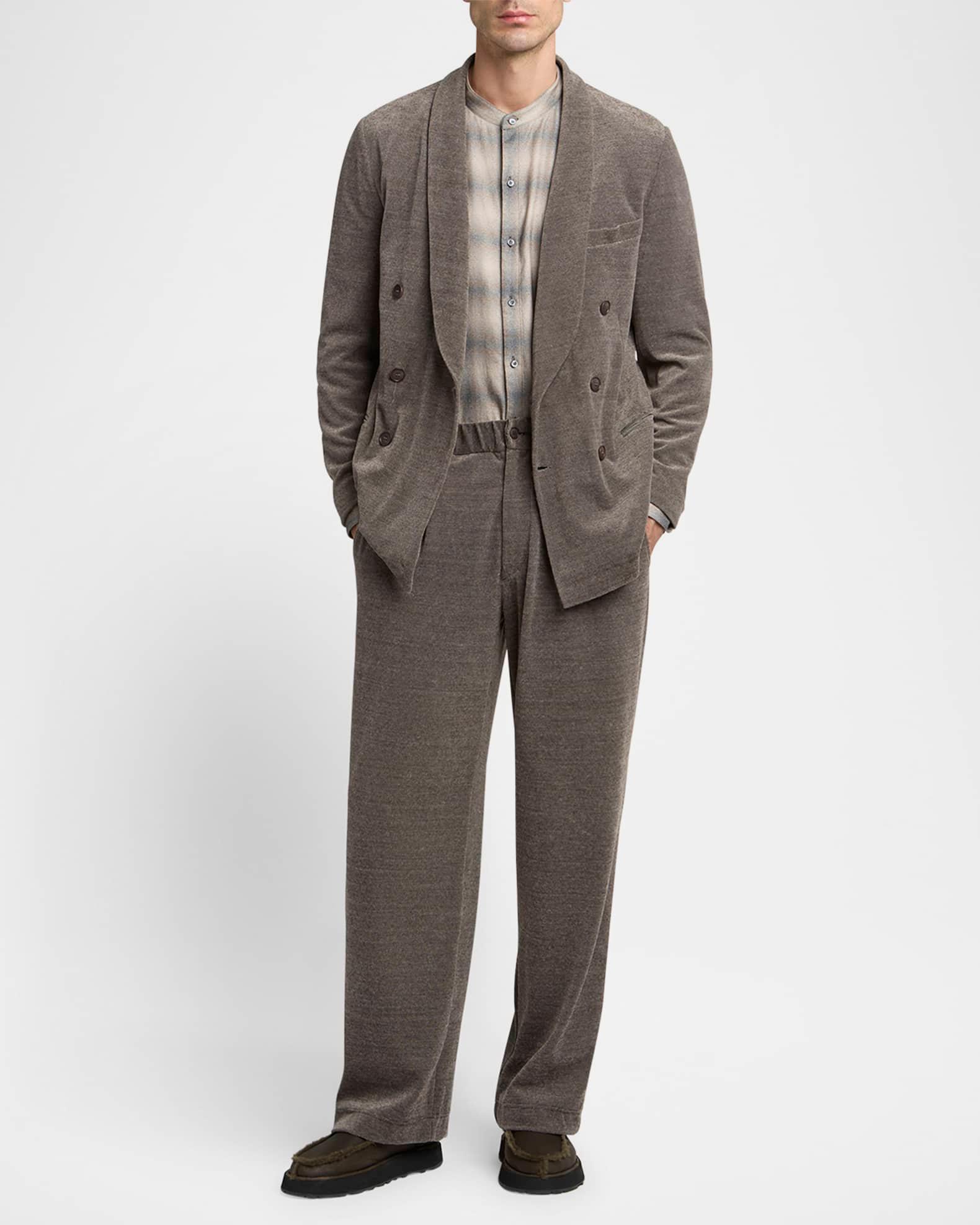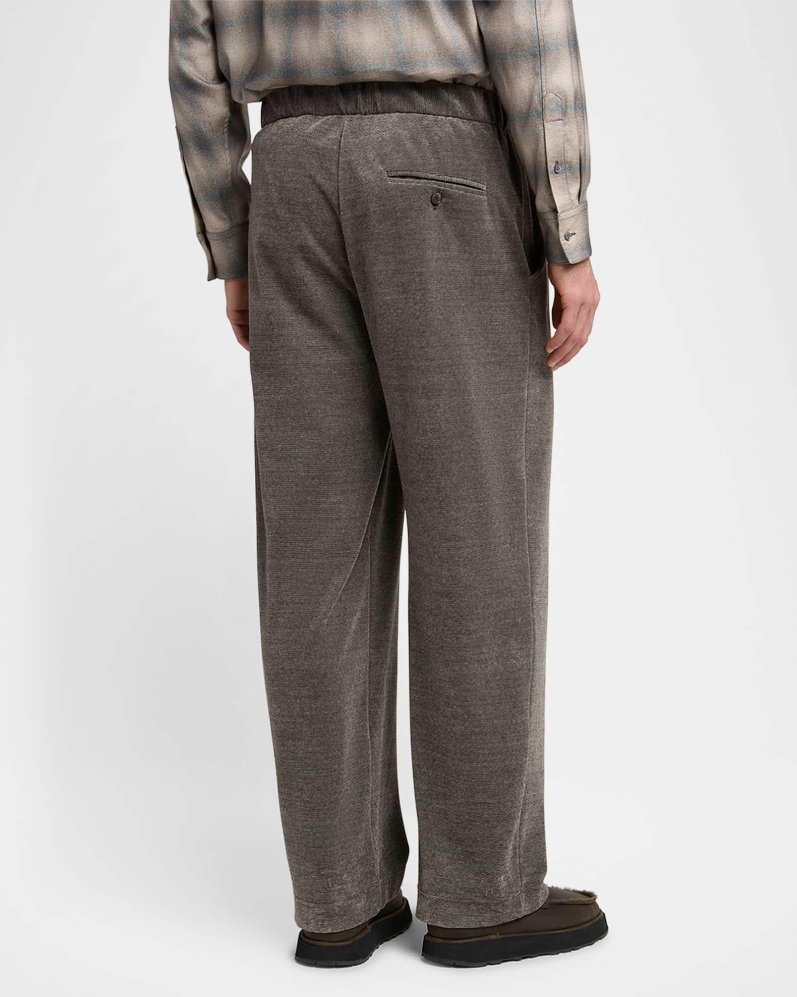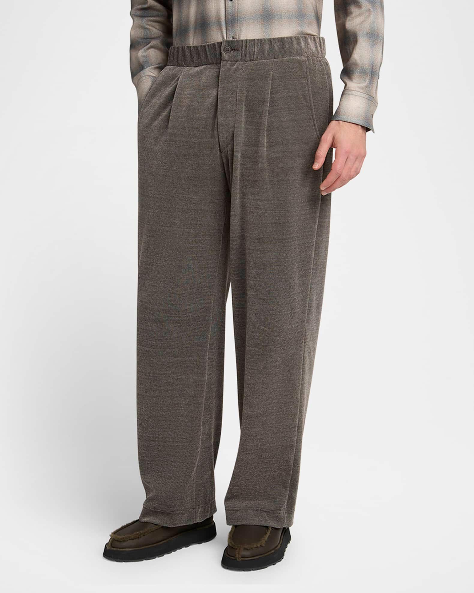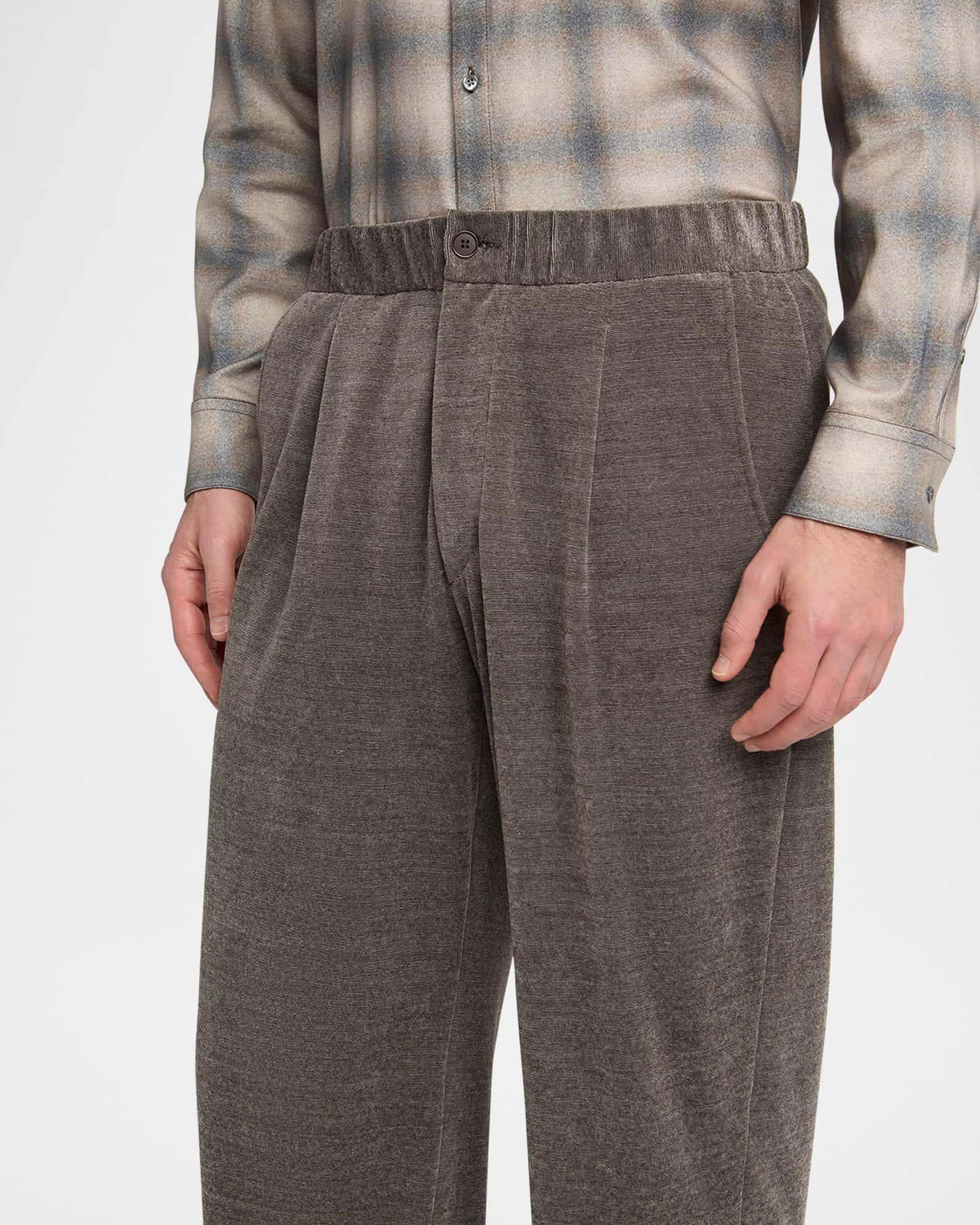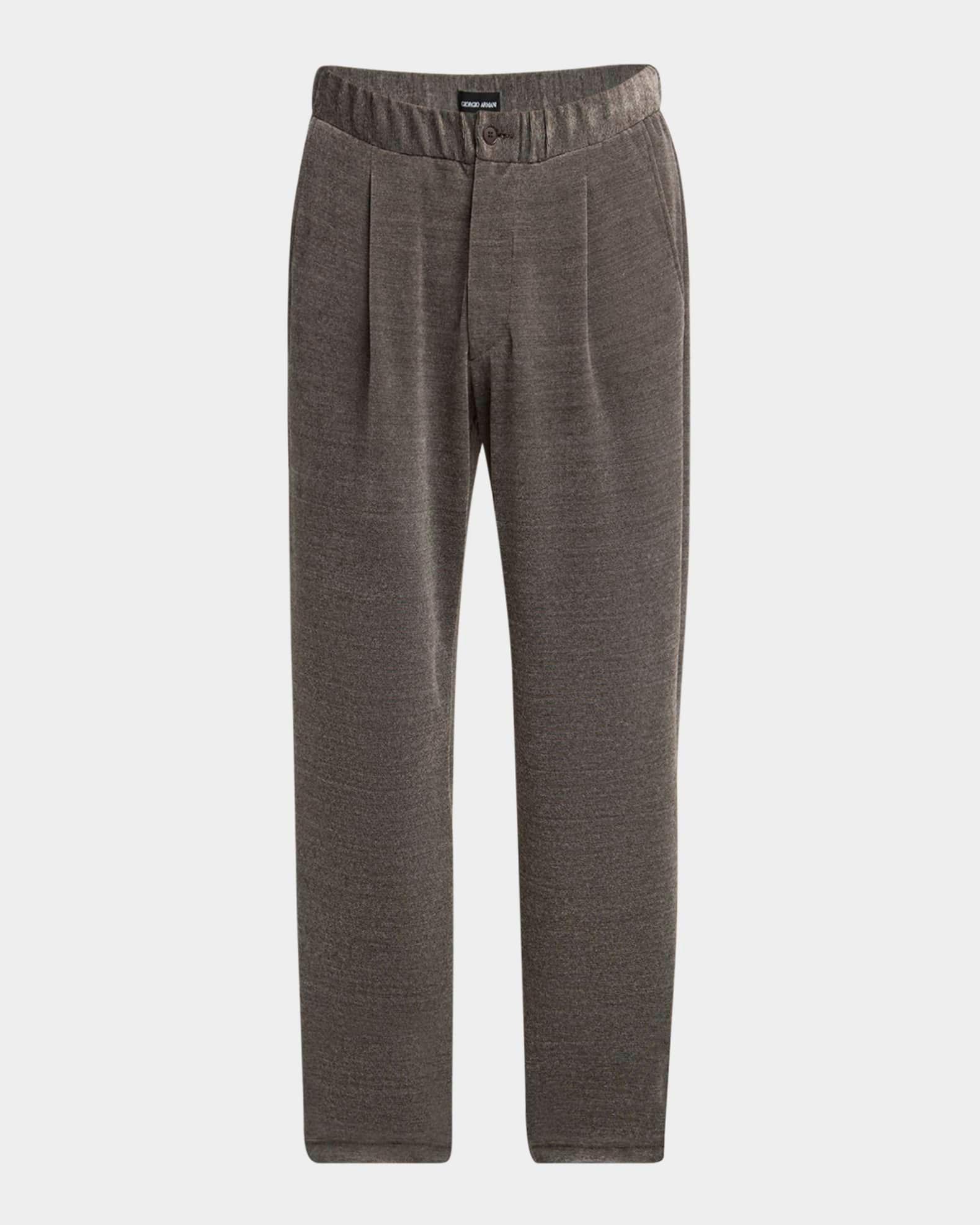 Giorgio Armani pants in a heathered chenille cotton blend, resulting in stylish dimension Pleated front Regular rise Side slip pockets Back besom pocket Relaxed fit through straight legs Full length Button-zip front Elasticized waistband Cotton/nylon/polyamide Dry clean Made in Italy