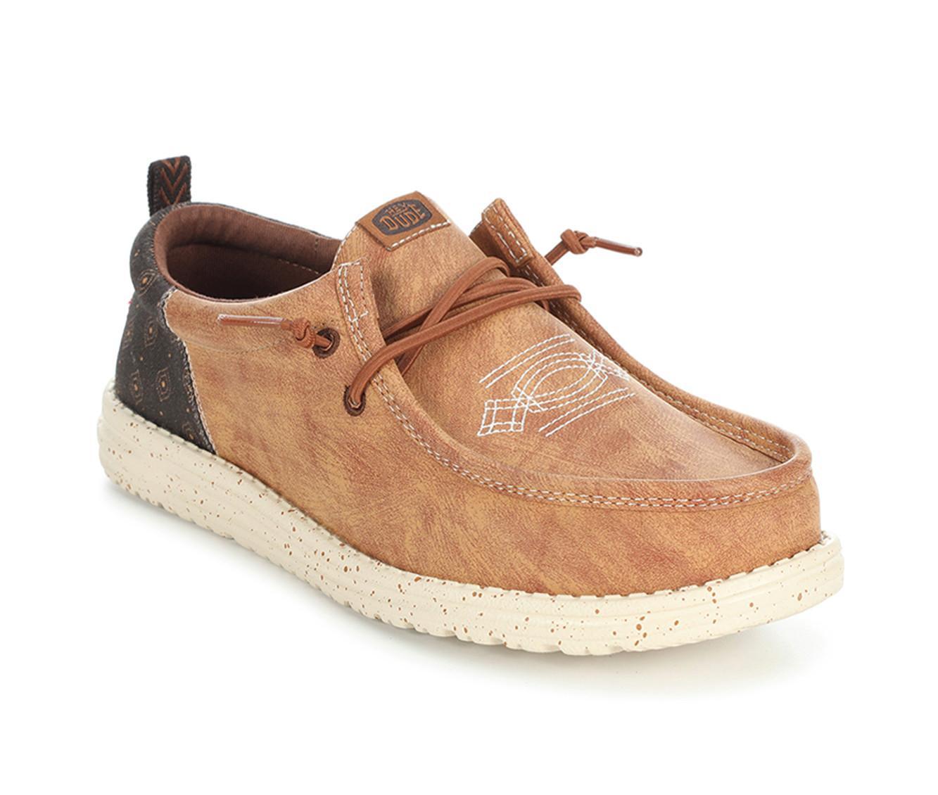 The Men’s HEYDUDE Wally Funk Western Stitch shoes bring western flair to everyday casual comfort. With a synthetic faux-leather upper and decorative western-style stitching at the mid-vamp, they deliver a distinctive look you can wear from city streets to relaxed evenings. Their elastic no-tie lacing system and lightweight foam-lined sole make them easy to slip on and comfortable to wear all day.