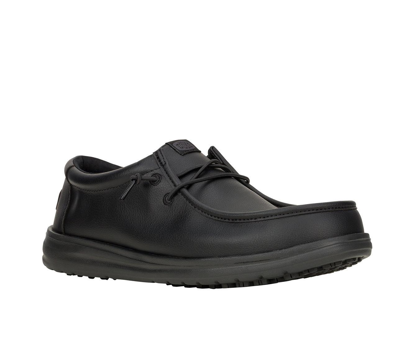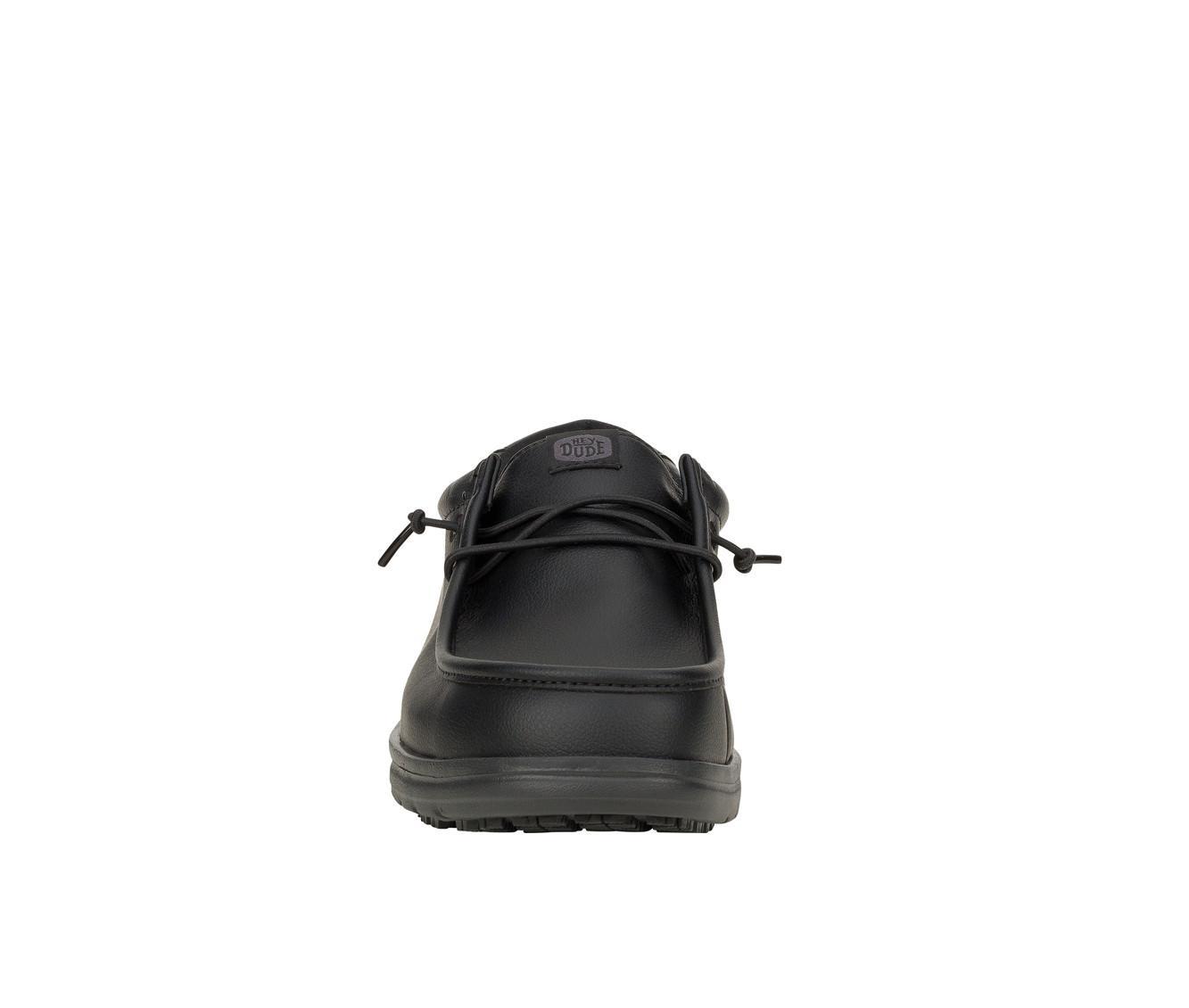 Designed for dependable performance and all-day comfort, these work shoes offer a perfect blend of durability and ease. The synthetic upper is treated with a water-repellent finish for protection against spills and splashes, while the easy-to-clean surface keeps maintenance simple. With a wide fit for extra room, a removable comfort foam insole, and a slip-resistant outsole, these shoes are ready to handle long shifts with confidence.