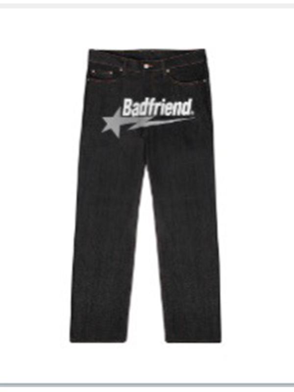 Men's Hip Pop Letter Print Loose Jeans