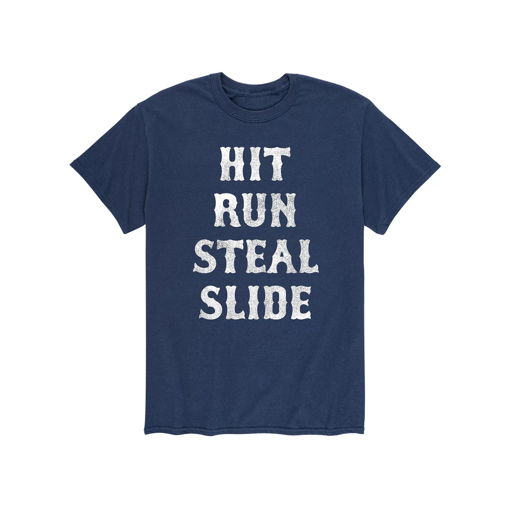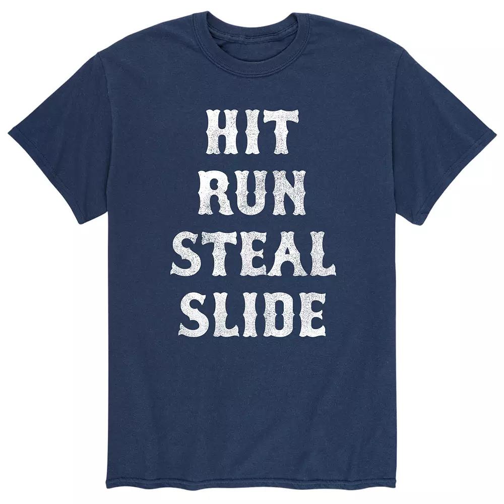 Hit, run, steal and slide in this mens graphic tee! Hit, run, steal and slide in this mens graphic tee! Crewneck Short sleevesFABRIC & CARE Cotton, polyester Machine wash ImportedSETUP INFORMATION Mens Hit Run Steal Slide Tee Size: XXL. Color: Red. Gender: male. Age Group: adult.
