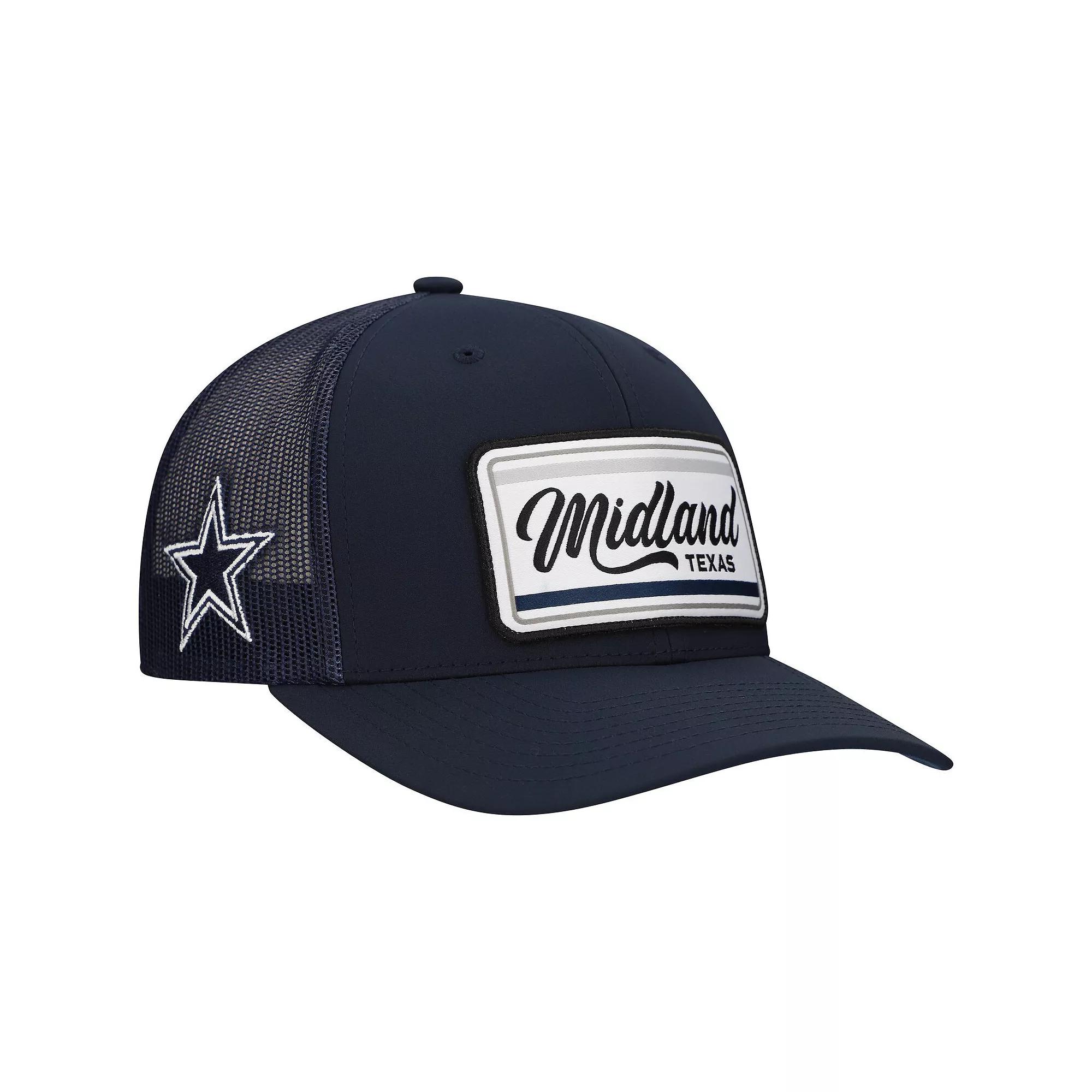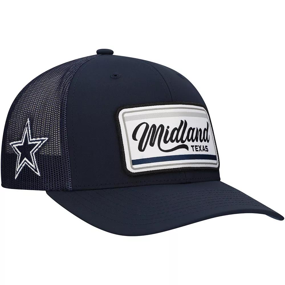 Add this Midland Rig Trucker Adjustable Hat from HOOey to your HOOey collection. The Midland Rig Trucker hat features embroidered Dallas Cowboys and local graphics across the front, showcasing your team pride with a touch of Texas flair. With a solid front panel and mesh mid and rear panels, this hat provides optimal breathability, keeping you cool and comfortable.Add this Midland Rig Trucker Adjustable Hat from HOOey to your HOOey collection. The Midland Rig Trucker hat features embroidered Dallas Cowboys and local graphics across the front, showcasing your team pride with a touch of Texas flair. With a solid front panel and mesh mid and rear panels, this hat provides optimal breathability, keeping you cool and comfortable.PRODUCT FEATURESBrand: HOOeyOfficially licensedStructured fitCurved billSnap ClosureMid CrownOne size fits mostImportedMaterial: 97% Polyester/3% SpandexMesh mid and rear panels for extra breathabilitySolid front panelWipe clean with a damp clothEmbroidered team and local graphic appliques on front and right panel Size: One Size. Color: Navy. Gender: male. Age Group: adult.
