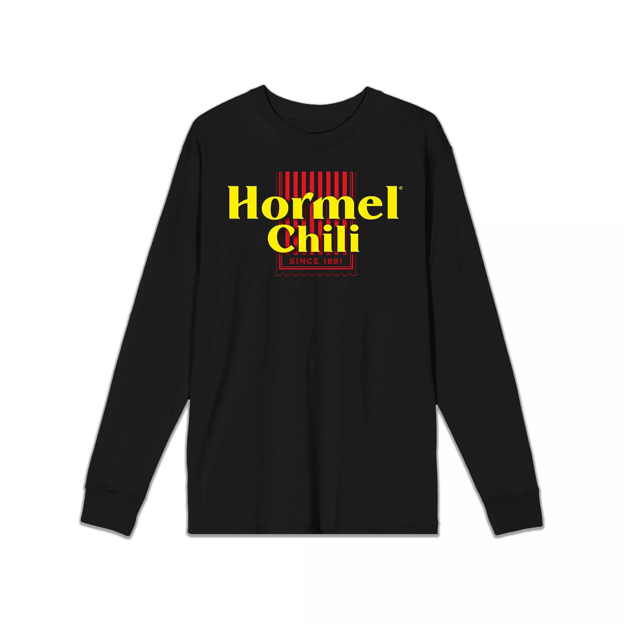Classic feel good comfort food. Youll feel the same in this Hormel Chili Since 1891 logo hoodie. Classic feel good comfort food. Youll feel the same in this Hormel Chili Since 1891 logo hoodie. Crewneck Long sleevesFABRIC & CARE Cotton, polyester Machine wash Imported Color: Black. Gender: male. Age Group: adult. Pattern: Graphic.