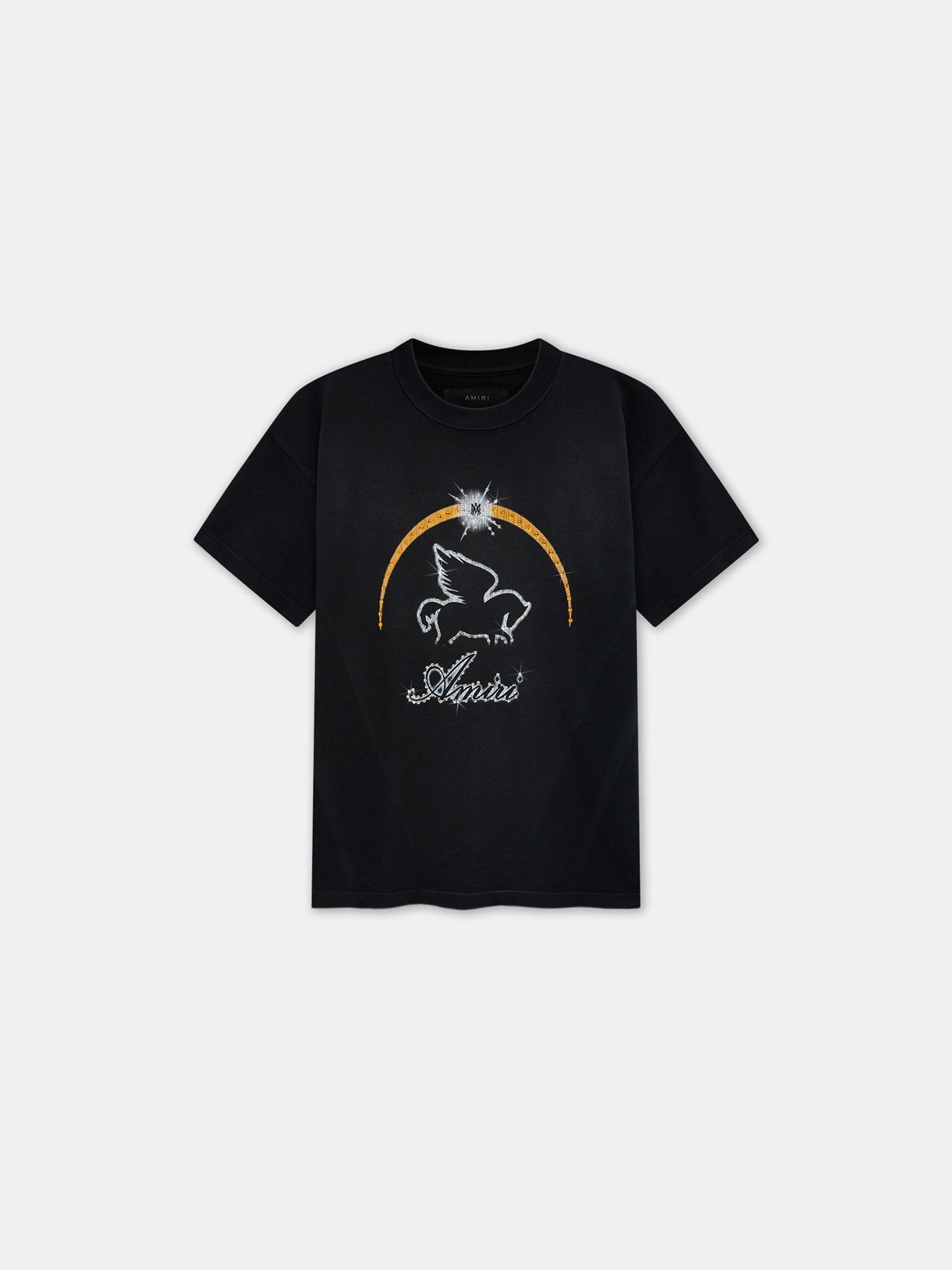 The mythical Pegasus reemerges for Pre-Spring 2025 as an emblem of California idealism. The AMIRI Crystal Pegasus Tee in cotton features the season's pegasus graphic embellished with crystals. PRE-SPRING 2025 COLLECTION MADE IN ITALY 100% COTTON
