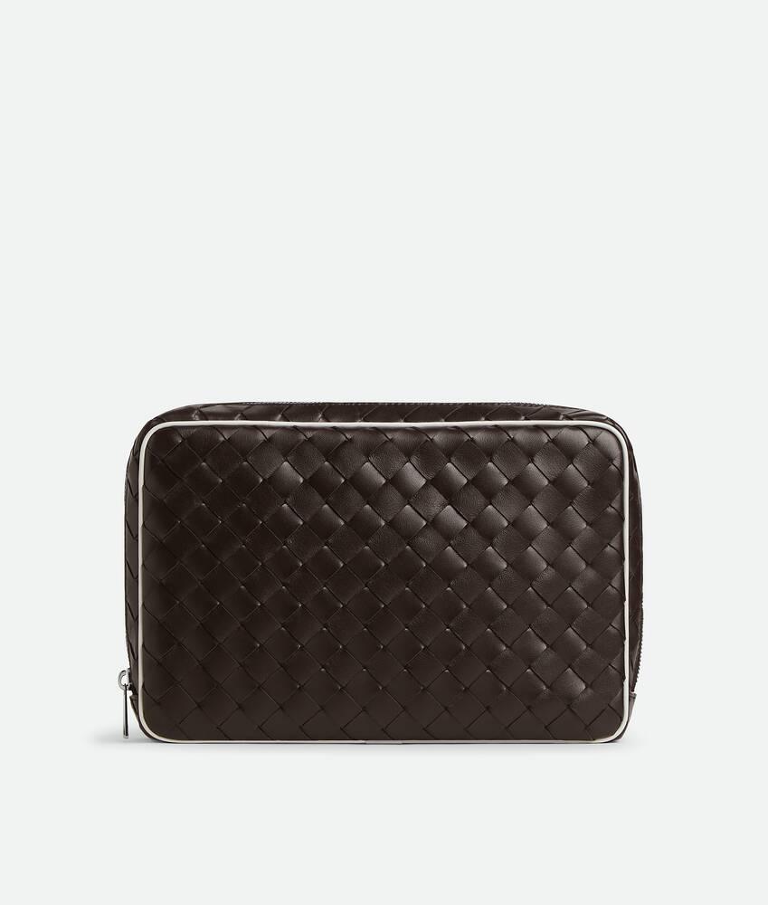 Men's Intrecciato Large Zipped Pouch in Fondant/white