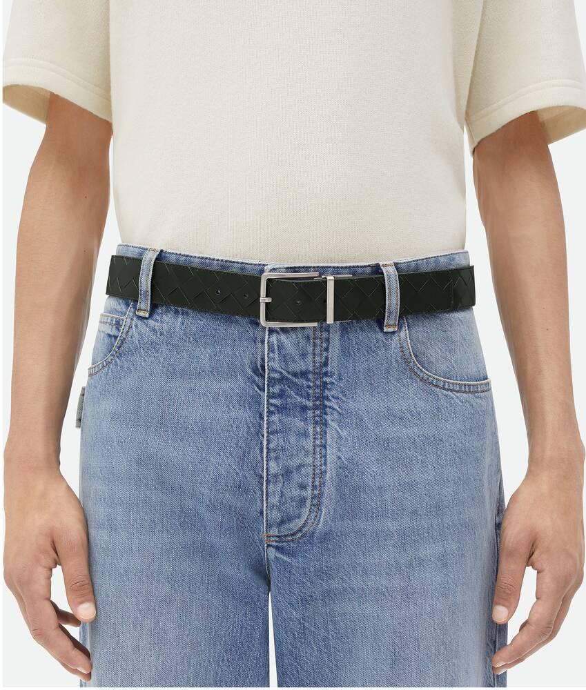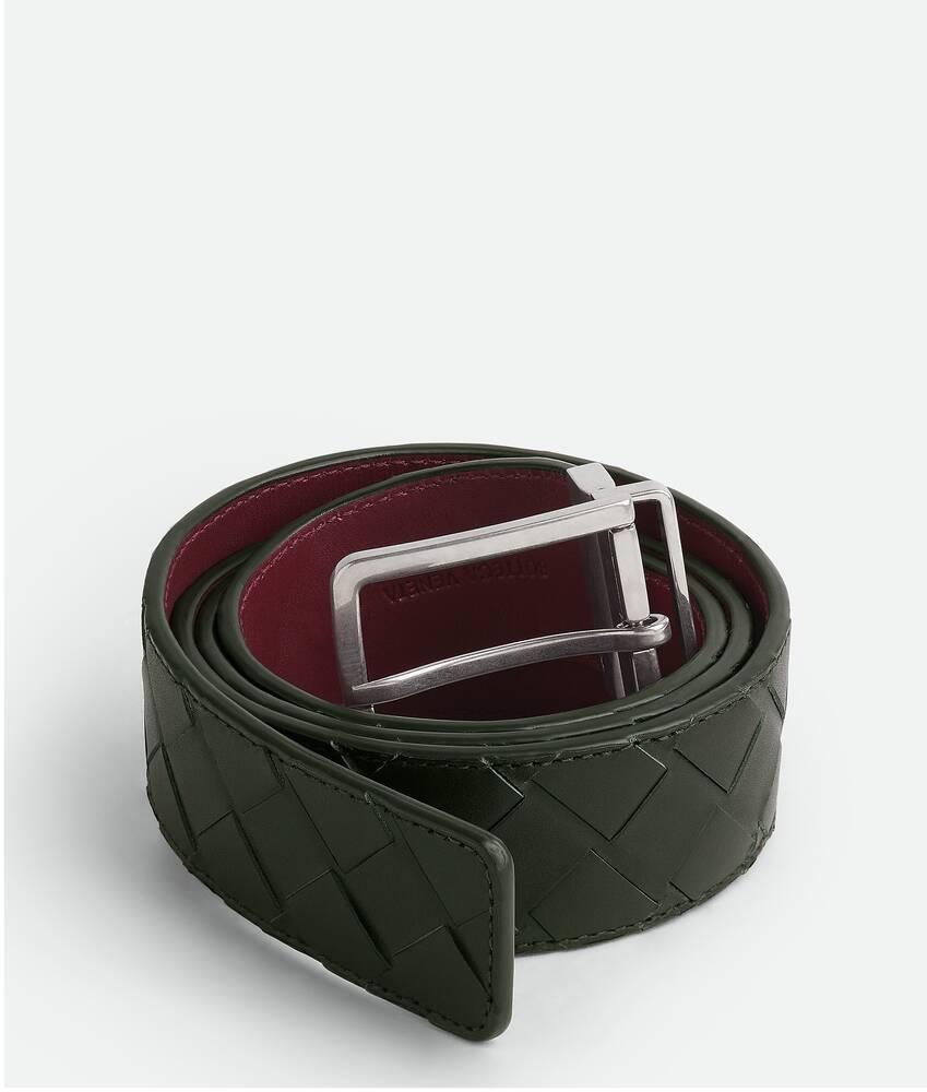 Men's Intrecciato Reversible Belt in Dark green / Barolo