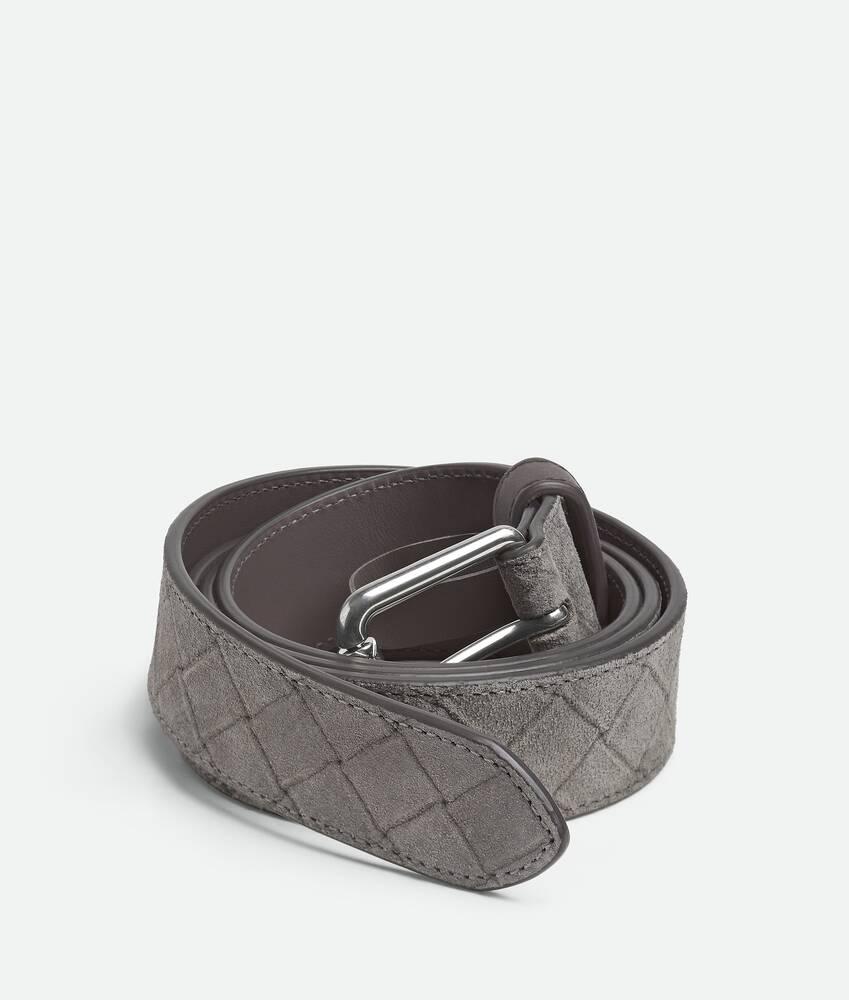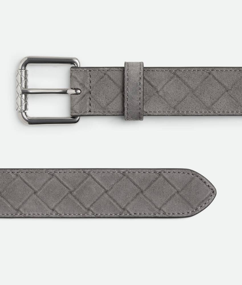 • Intrecciato embossed suede belt• Metal roller buckle• Prong closure