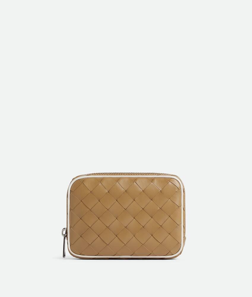 Men's Intrecciato Teen Zipped Pouch in Dark praline/white
