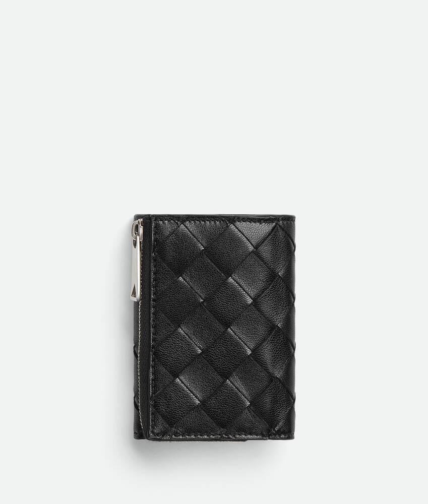 Men's Intrecciato Tiny Tri-Fold Wallet in Black