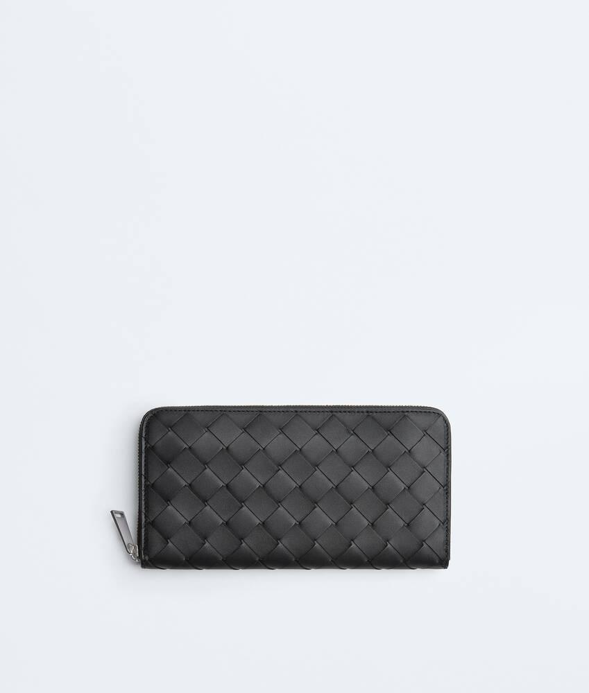 Men's Intrecciato Zip Around Wallet in Black grass