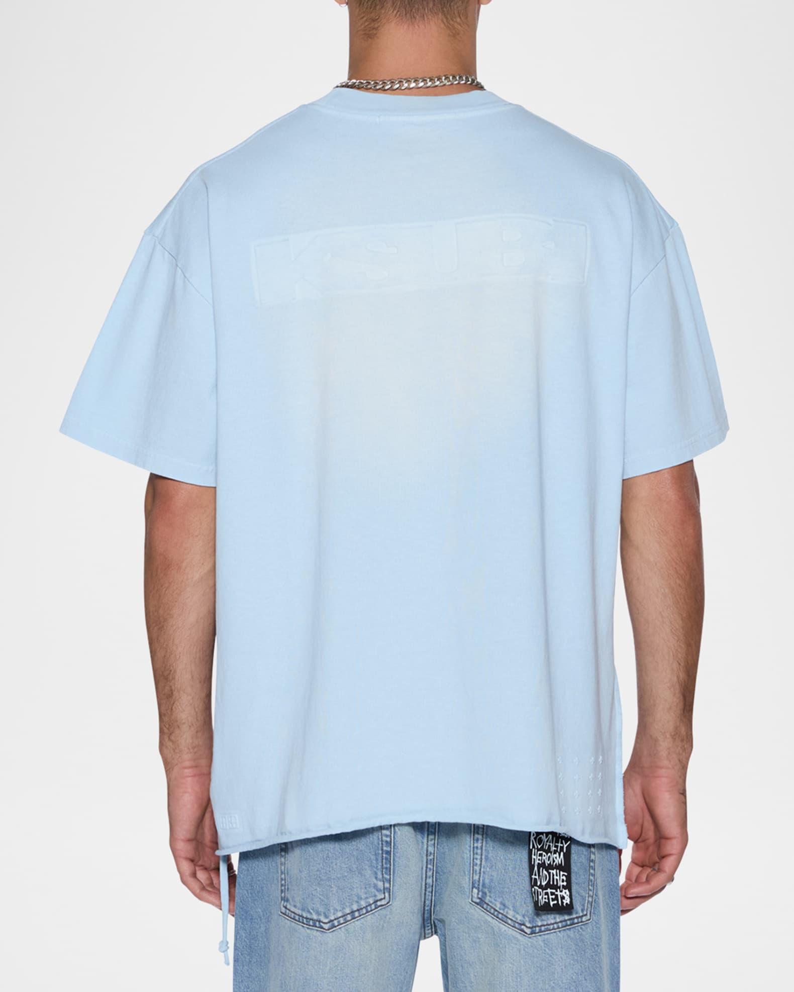 Ksubi T-shirt made from premium cotton, showcasing the signature rats tail Tonal logo text on the chest and back for subtle branding T-box accent Back 4x4 crosses Crew neckline Short sleeves Oversized fit Pullover style Cotton Machine wash cold, wash inside out Imported