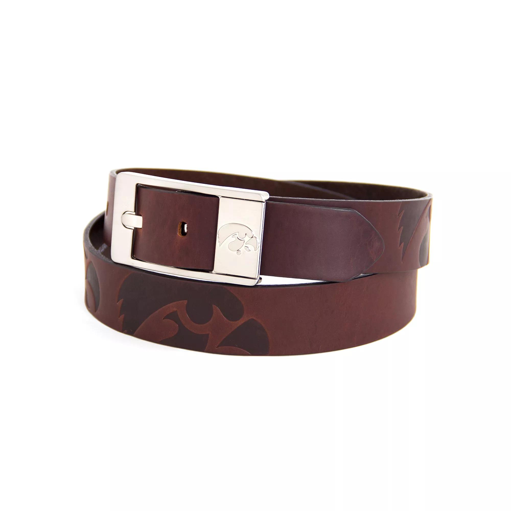 Crafted with your team's officially licensed logo on the buckle and branded into the leather, this belt offers a look you'll love with a perfect dose of team pride! | Eagles Wings Men's Iowa Hawkeyes Brandish Belt, Brown, 38
