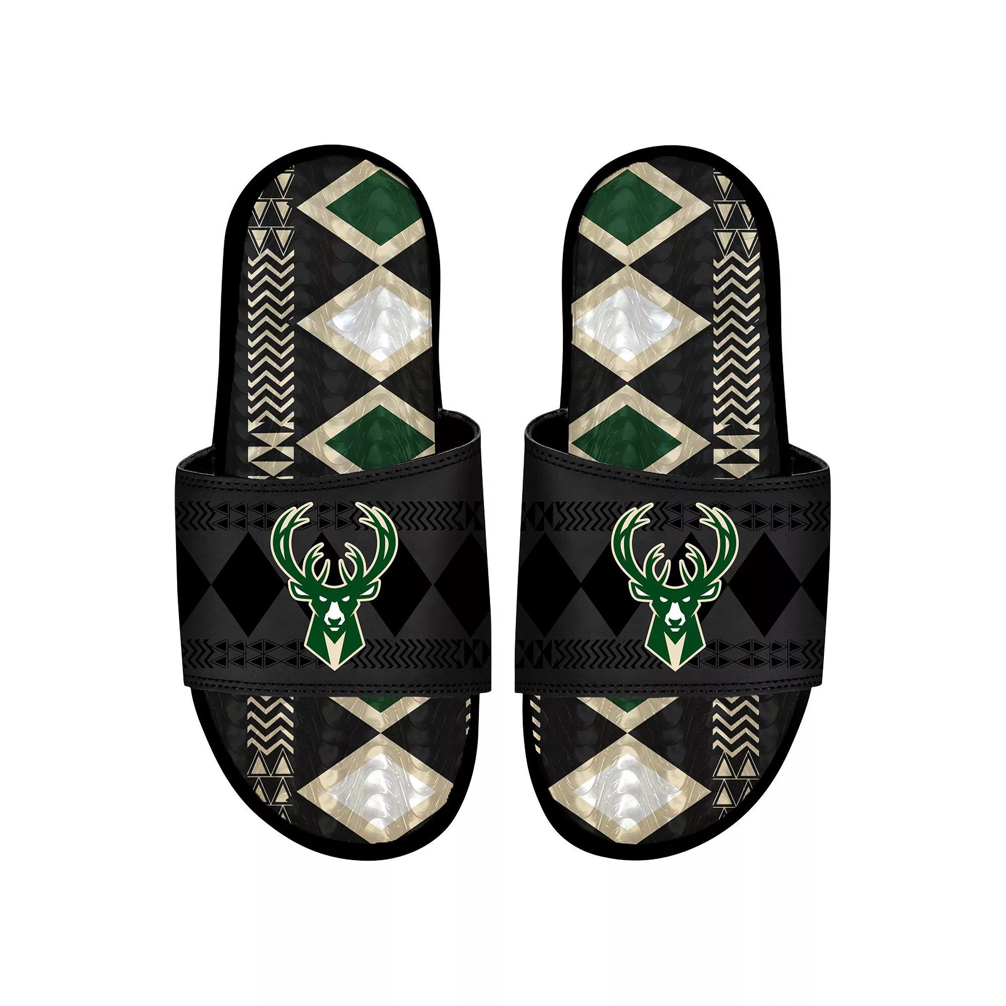 Support your Milwaukee Bucks in comfort and style with these Black Shooting Touch Rwanda Pattern Gel Slide Sandals from ISlide. Built with comfort in mind, these sandals feature gel bubbles on the sole and built-in arch support so you can wear them all day long. The slip-on style with an open toe makes them easy to throw on for any occasion, while the textured sole provides reliable traction on various surfaces.Support your Milwaukee Bucks in comfort and style with these Black Shooting Touch Rwanda Pattern Gel Slide Sandals from ISlide. Built with comfort in mind, these sandals feature gel bubbles on the sole and built-in arch support so you can wear them all day long. The slip-on style with an open toe makes them easy to throw on for any occasion, while the textured sole provides reliable traction on various surfaces.PRODUCT FEATURESGel bubbles on soleMaterial: 70% Rubber/30% Synthetic FabricImportedWipe clean with a damp clothTextured soleOfficially licensedSlip-on style with open-toeBrand: ISlidePrinted graphicsBuilt-in arch support Gender: male. Age Group: adult.