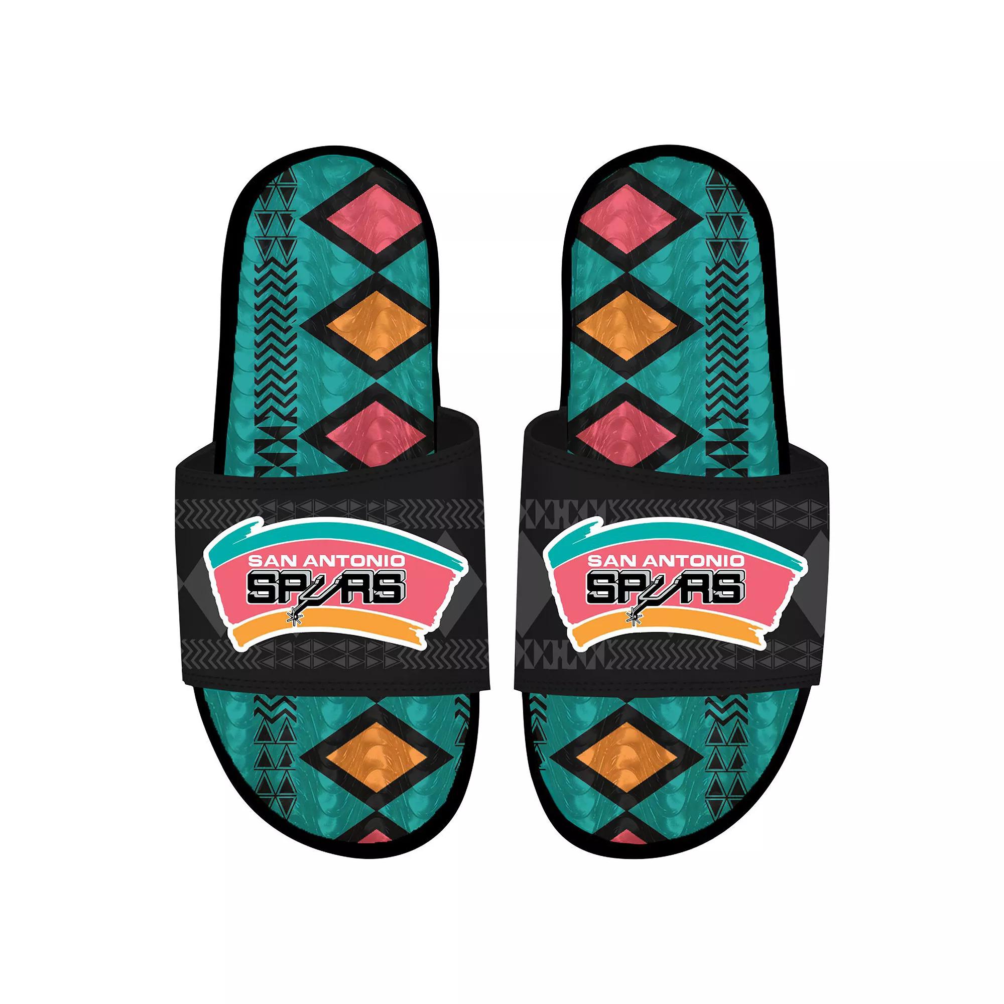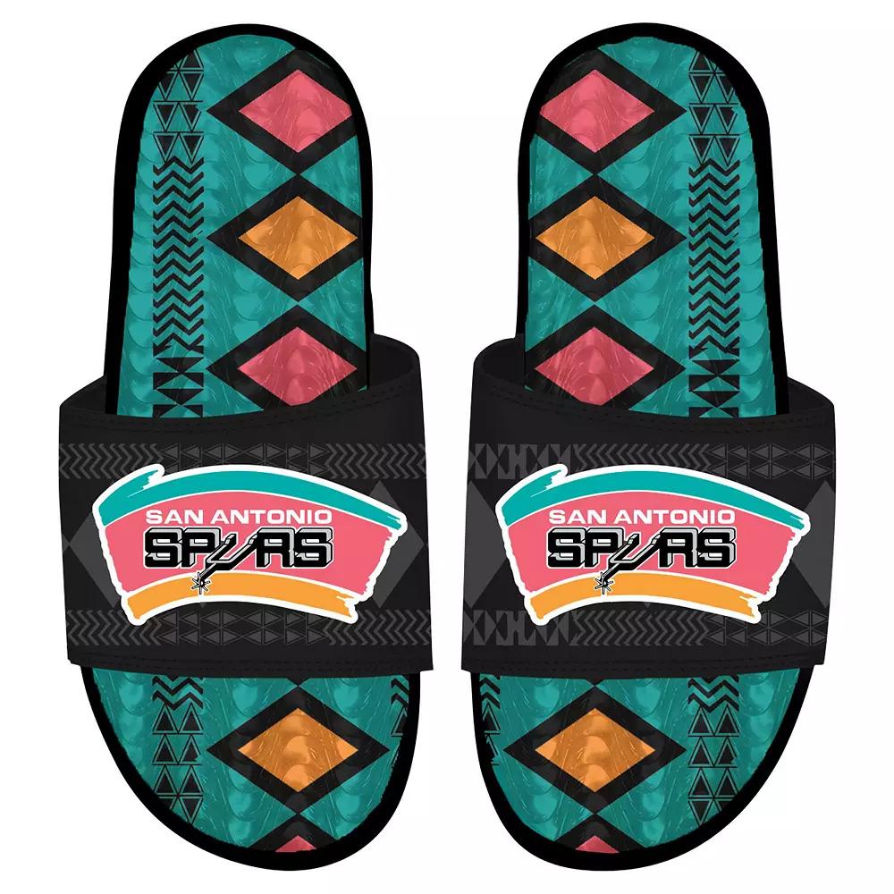 Show off your San Antonio Spurs fandom with these unique Black Shooting Touch Rwanda Pattern Gel Slide Sandals from ISlide. Built with comfort in mind, these sandals feature a textured sole for added grip and built-in arch support for all-day wear. The addition of gel bubbles on the sole provides a unique, cushioned feel, ensuring maximum comfort with every step you take. Show off your San Antonio Spurs pride with the eye-catching Shooting Touch Rwanda pattern printed on the sandals, making them a stylish and comfortable choice for any Spurs fan.Show off your San Antonio Spurs fandom with these unique Black Shooting Touch Rwanda Pattern Gel Slide Sandals from ISlide. Built with comfort in mind, these sandals feature a textured sole for added grip and built-in arch support for all-day wear. The addition of gel bubbles on the sole provides a unique, cushioned feel, ensuring maximum comfort with every step you take. Show off your San Antonio Spurs pride with the eye-catching Shooting Touch Rwanda pattern printed on the sandals, making them a stylish and comfortable choice for any Spurs fan.PRODUCT FEATURESGel bubbles on soleWipe clean with a damp clothMaterial: 70% Rubber/30% Synthetic FabricImportedOfficially licensedSlip-on style with open-toePrinted graphicsBuilt-in arch supportTextured soleBrand: ISlide Size: 9. Gender: male. Age Group: adult.