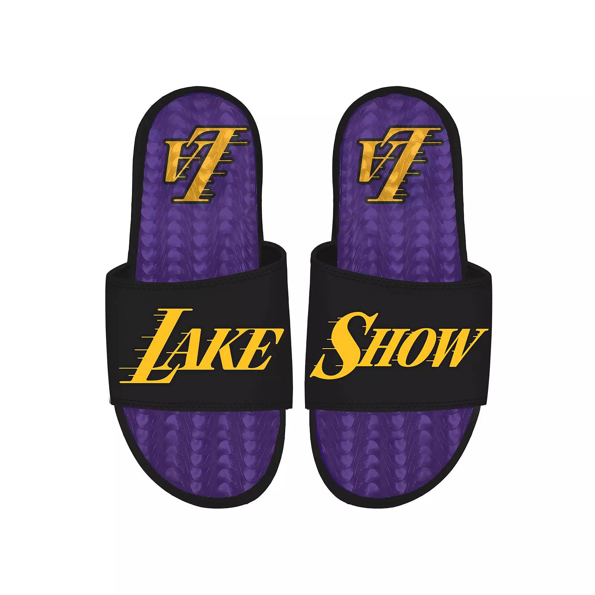 Celebrate your favorite NBA team with every step when you wear these Los Angeles Lakers Gel Slide Sandals from ISlide. They feature a massaging footbed on a lightweight sole, making them perfect for days where you're on the move. With stylish Los Angeles Lakers 2024/25 City Edition graphics, these sandals are the perfect thing to support your favorite team all season long.Celebrate your favorite NBA team with every step when you wear these Los Angeles Lakers Gel Slide Sandals from ISlide. They feature a massaging footbed on a lightweight sole, making them perfect for days where you're on the move. With stylish Los Angeles Lakers 2024/25 City Edition graphics, these sandals are the perfect thing to support your favorite team all season long.PRODUCT FEATURESMaterial: 70% Rubber/30% Synthetic MaterialsImportedBrand: ISlideOfficially licensedEach sandal is custom printed by hand using a unique printing processLightweight yet supportive EVA mid-solePrinted artworkMachine wash, tumble dry lowRPL Signature Relief Pro Lining and massaging foot-bed contours with anti-microbial spraySneaker-inspired out-sole with forefoot and heel herringbone accentsAdjustable grip-strap with anti-abrasion spandex lining Size: 11. Color: Black. Gender: male. Age Group: adult.