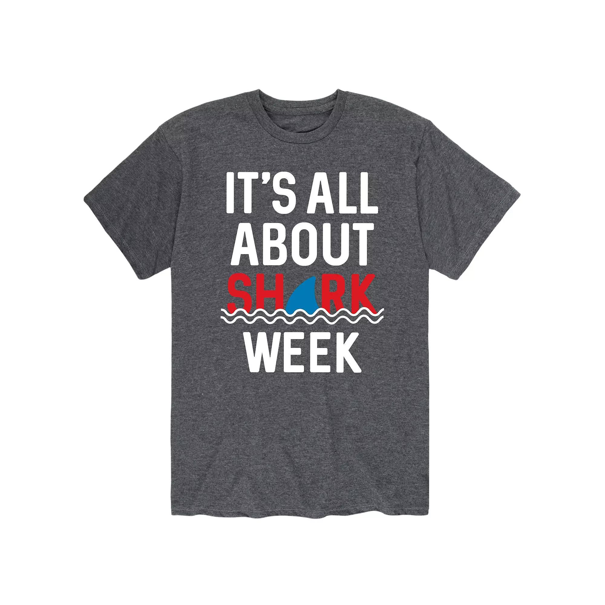 Its all about Shark Week with this tee! Its all about Shark Week with this tee! Crewneck Short sleevesFABRIC & CARE Cotton, polyester Machine wash Imported Color: Grey. Gender: male. Age Group: adult. Pattern: Graphic.