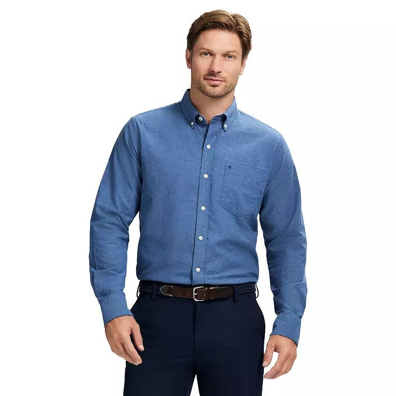 Look spiffy for any occasion in this men's long sleeve Oxford woven button-down shirt from IZOD. Click on this MEN'S GUIDE to find the perfect fit and more! Look spiffy for any occasion in this men's long sleeve Oxford woven button-down shirt from IZOD. Click on this MEN'S GUIDE to find the perfect fit and more! FEATURES Button-front 1 front slip pocket Cuffed long sleevesFIT & SIZING Classic fitFABRIC & CARE Cotton, polyester Machine wash Imported Color: Medieval Blue Solid. Gender: male. Age Group: adult.