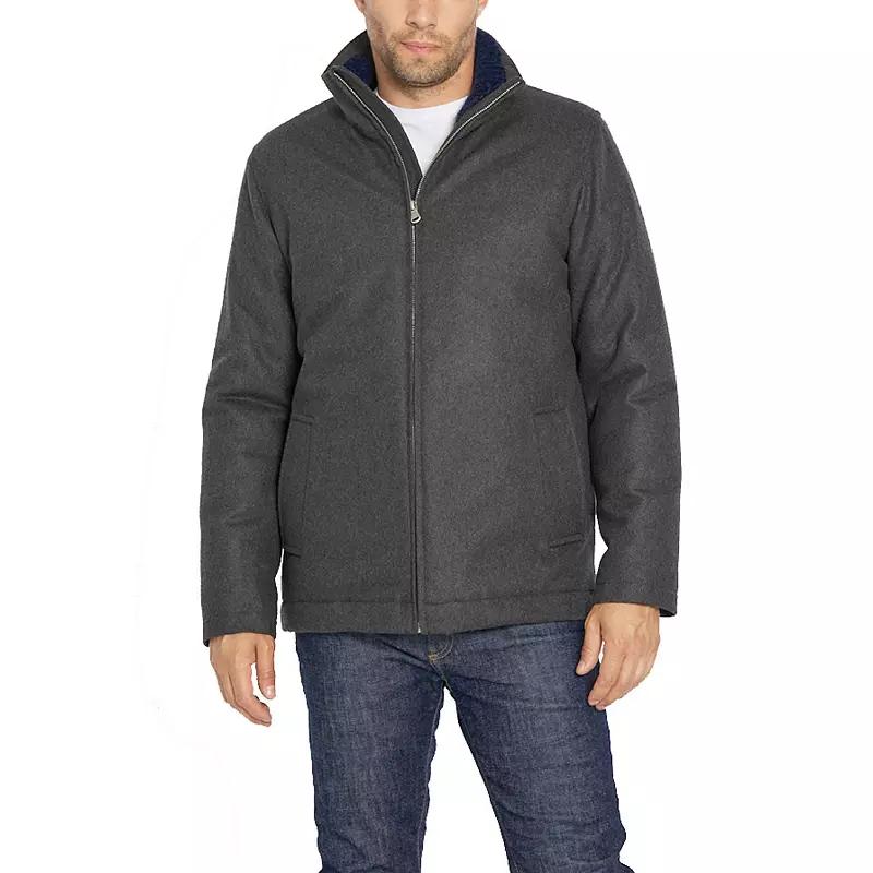 This Men's IZOD Wool Blend Knit Collar Coat is the perfect pick for staying warm and stylish. Click on this MEN'S GUIDE to find the perfect fit and more! This Men's IZOD Wool Blend Knit Collar Coat is the perfect pick for staying warm and stylish. Click on this MEN'S GUIDE to find the perfect fit and more! FEATURES Mockneck Zip front closure Water resistant design Long sleeves 2 front pockets, 1 interior pocket Heavyweight warmth ratingFIT & SIZING 30-in. from shoulder to hemFABRIC & CARE Wool, polyester Polyester fill Dry clean Imported Size: XL. Color: Charcoal. Gender: male. Age Group: adult. Material: Wool & Wool Blend.