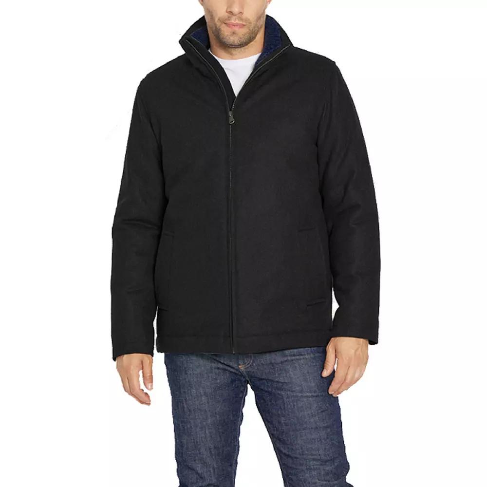 This Men's IZOD Wool Blend Knit Collar Coat is the perfect pick for staying warm and stylish. Click on this MEN'S GUIDE to find the perfect fit and more! This Men's IZOD Wool Blend Knit Collar Coat is the perfect pick for staying warm and stylish. Click on this MEN'S GUIDE to find the perfect fit and more! FEATURES Mockneck Zip front closure Water resistant design Long sleeves 2 front pockets, 1 interior pocket Heavyweight warmth ratingFIT & SIZING 30-in. from shoulder to hemFABRIC & CARE Wool, polyester Polyester fill Dry clean Imported Color: Black. Gender: male. Age Group: adult. Material: Wool & Wool Blend.