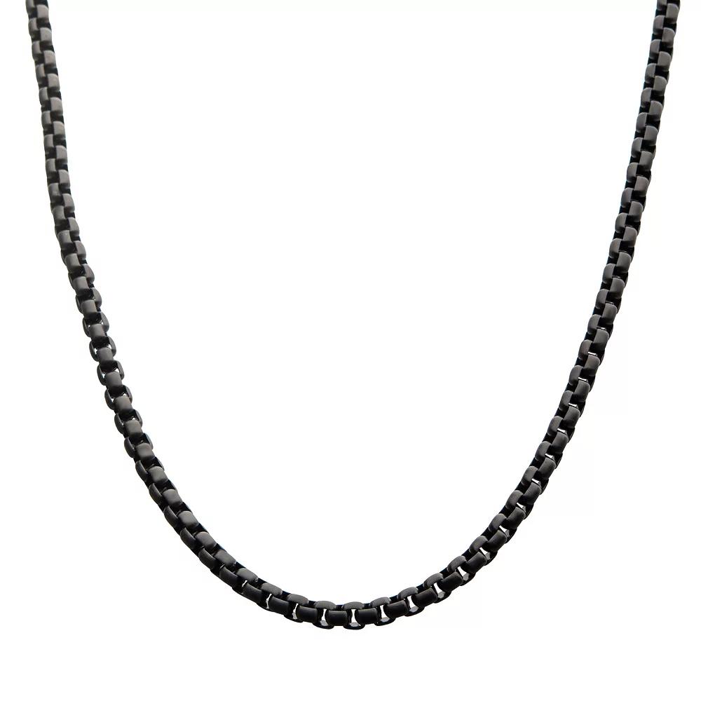 This men's jet tone bold round box chain necklace is the perfect accessory for a man with a sense of style. This men's jet tone bold round box chain necklace is the perfect accessory for a man with a sense of style. NECKLACE DETAILS Chain length: 24 in., 22 in. Chain type: box Clasp: lobster-claw Metal: stainless steel Plating: ion plated Finish: polished Packaging: boxed Please note, due to the high value of this item, a signature may be required upon delivery. Size: 24". Color: Black. Gender: male. Age Group: adult.