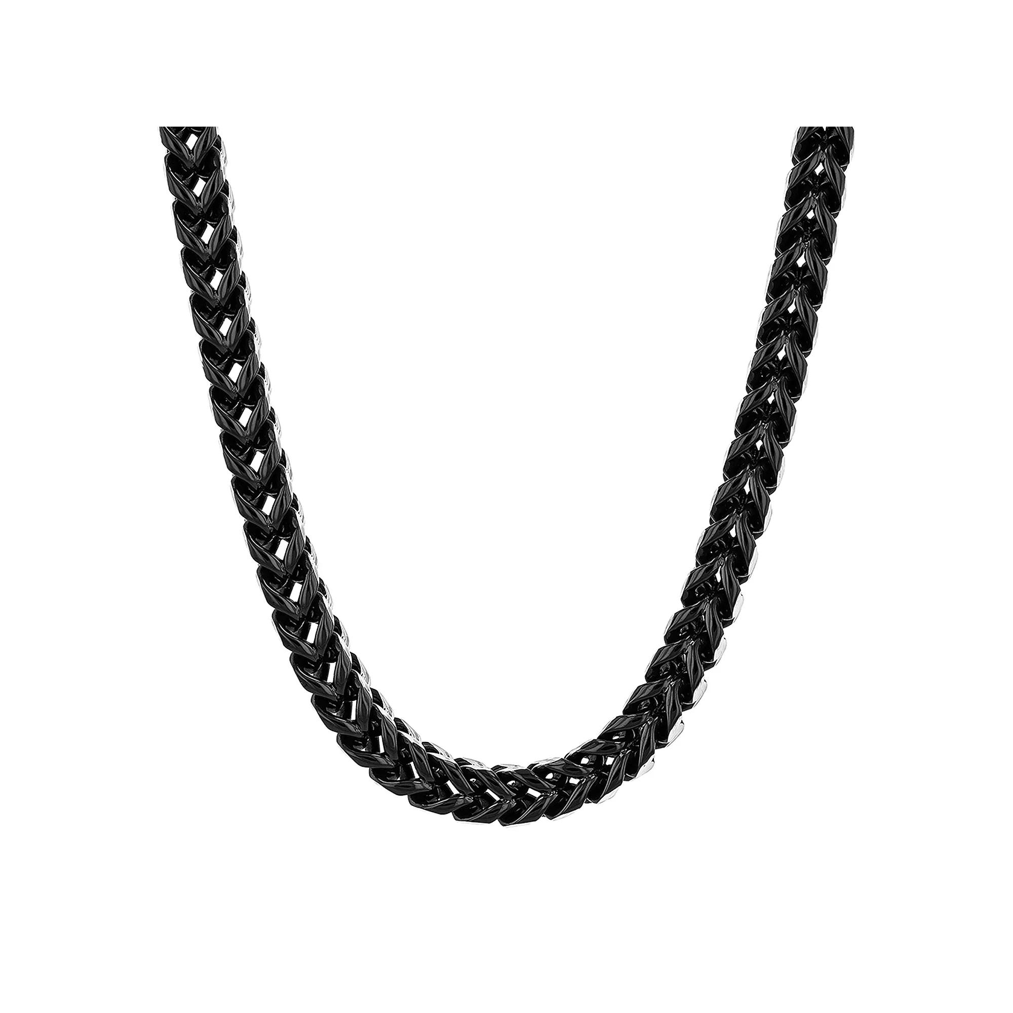 Complement your look with this Mens Jewelry Nation Franco Link Chain Necklace. Click on this JEWELRY & WATCHES GUIDE to learn about fit, styles, materials and more! Complement your look with this Mens Jewelry Nation Franco Link Chain Necklace. Click on this JEWELRY & WATCHES GUIDE to learn about fit, styles, materials and more! FEATURES Chain length: 24 in. Chain type: franco Chain width: 5.2 mm, 5.5 mm Total weight: 64 g, 43 g Clasp: lobster-claw Nickel free Metal: stainless steel Plating: silver tone, ion plated Finish: polished Packaging: boxed Imported Size: 24. Color: Black Two Tone. Gender: male. Age Group: adult.