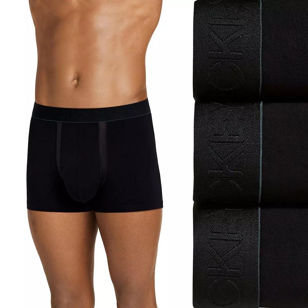 Stay comfortable during any activity with these Men's Jockey 3-Pack Chafe-Proof Pouch Stretch Trunk Briefs. Click on this MEN'S GUIDE to find the perfect fit and more!Stay comfortable during any activity with these Men's Jockey 3-Pack Chafe-Proof Pouch Stretch Trunk Briefs. Click on this MEN'S GUIDE to find the perfect fit and more!FEATURES 3-pack Elastic waistband Flatlock seams help reduce chafing in sensitive areas AirflowQuick-drying mesh inside the ergonomically engineered pouch keeps everything comfortably separated and supported Staycool+® technology to help keep you cool and dry No flyFIT & SIZING Approximate 3" inseamFABRIC & CARE Body: cotton, spandex Mesh lining in pouch: polyester, spandex Machine wash Imported Color: Black. Gender: male. Age Group: adult.