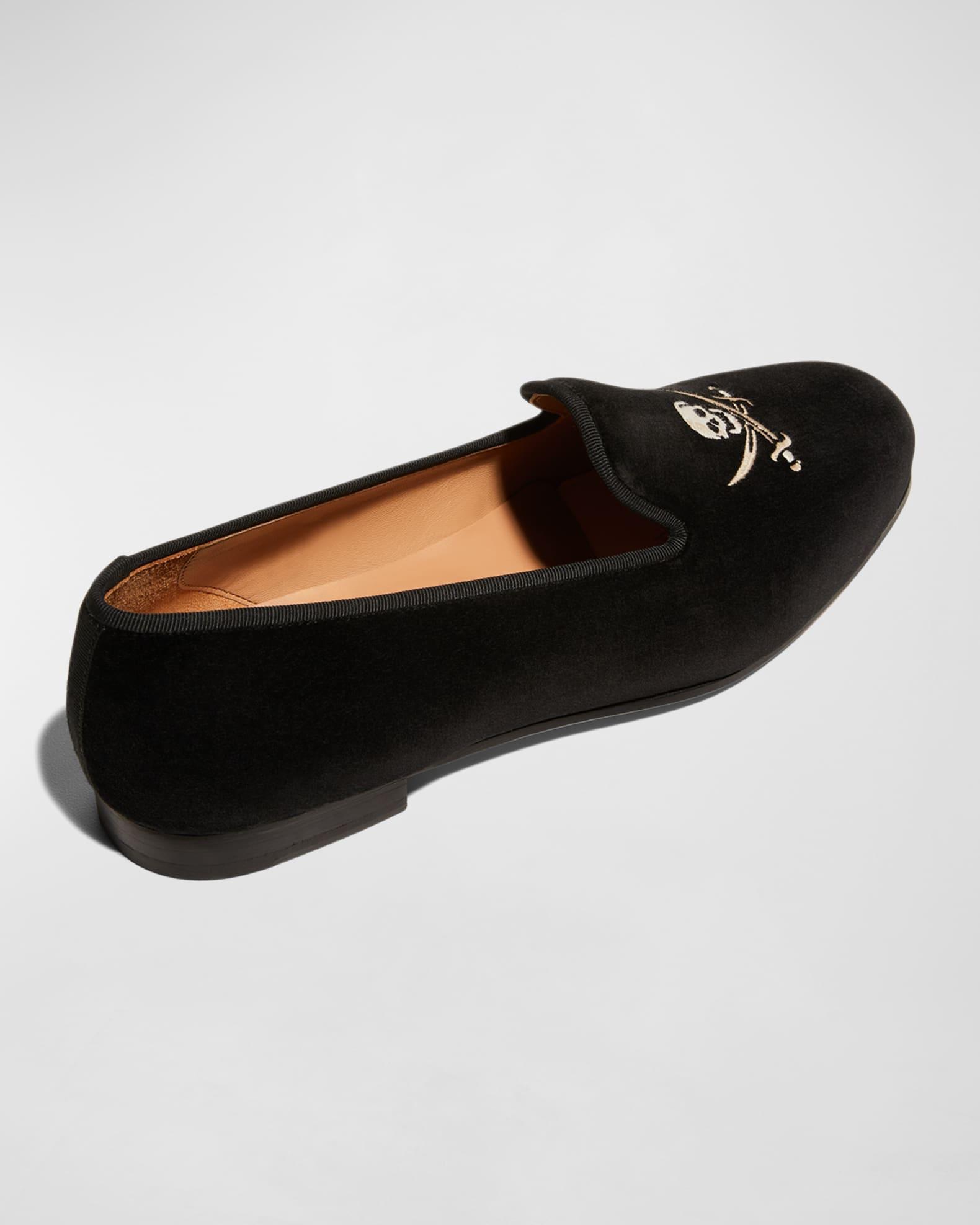 Men's Jolly Roger Skull Embroidered Velvet Smoking Slippers