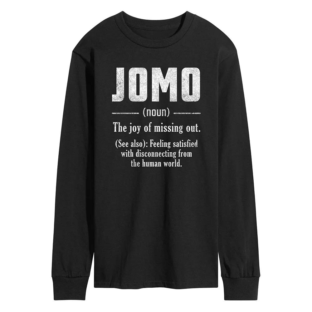 Get ready for the day with this awesome Mens JOMO Long Sleeve Graphic Tee. Get ready for the day with this awesome Mens JOMO Long Sleeve Graphic Tee. FEATURES Crewneck Long sleeveFABRIC & CARE Cotton heather, cotton, polyester Machine wash Imported Size: XXL. Color: Black. Gender: male. Age Group: adult.