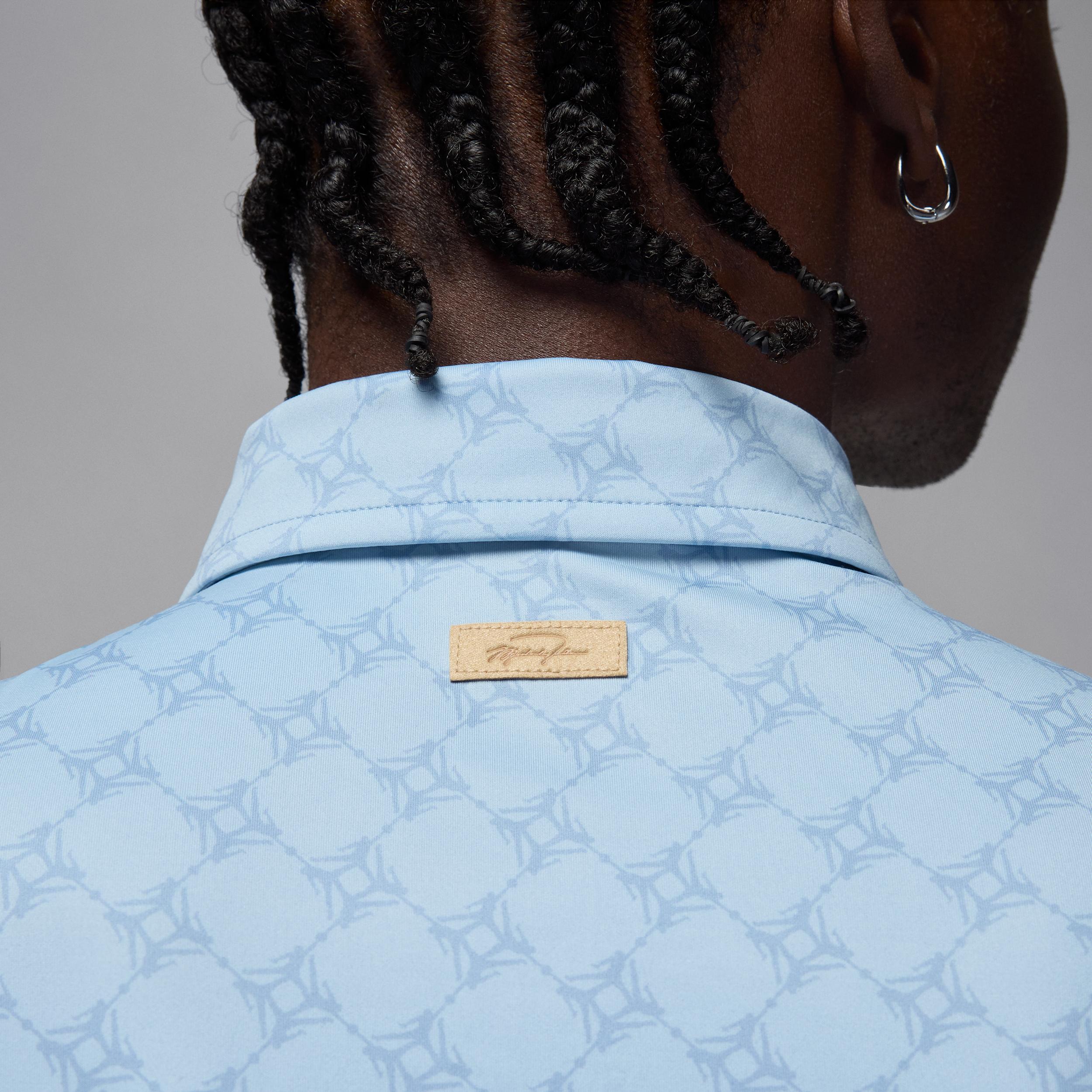 This polo is made for the links. Its stretchy knit fabric helps you stay fresh through all 18 holes. And the look? It's Jordan style through and through. Benefits:Stretchy knit fabric flexes with you for ease of movement. Drop-tail hem provides extra coverage in the back, perfect for bending and stretching with your shirt tucked in. [] Product Details:86% polyester/14% spandex. Machine Wash. Imported. Style: HV1155; Color: Light Armory Blue/Light Armory Blue; Size: M; Gender: Male; Age Group: Adult | Jordan Sport Men's Printed Golf Polo in Blue, Size: Medium | HV1155-440